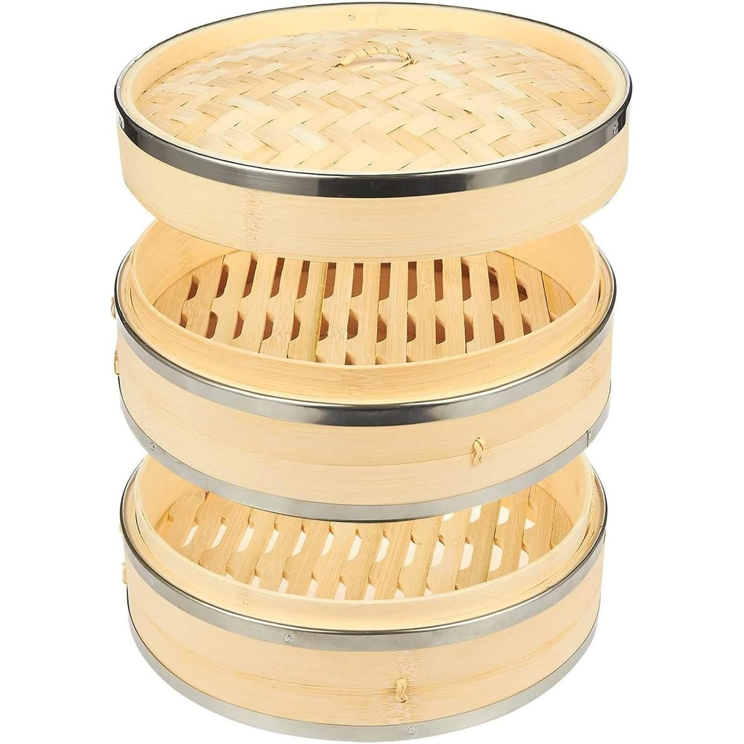 Sturdy Construction with Steel Rings: Crafted from sturdy bamboo and reinforced with steel rings, this Chinese steamer basket offers durability, stability, and even heat distribution, ensuring consistent cooking results.