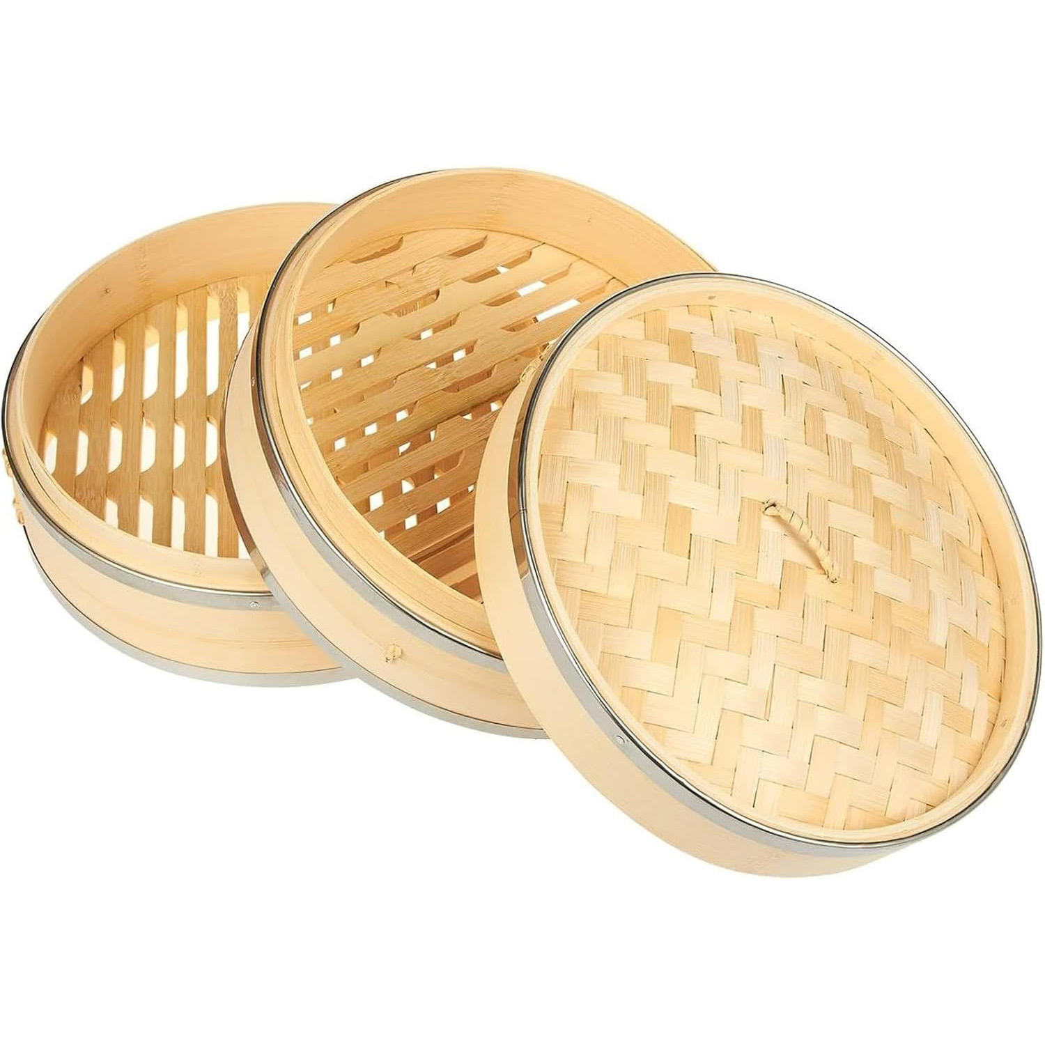 2-Tier 10 Inch Bamboo Steamer Basket with Steel Rings
