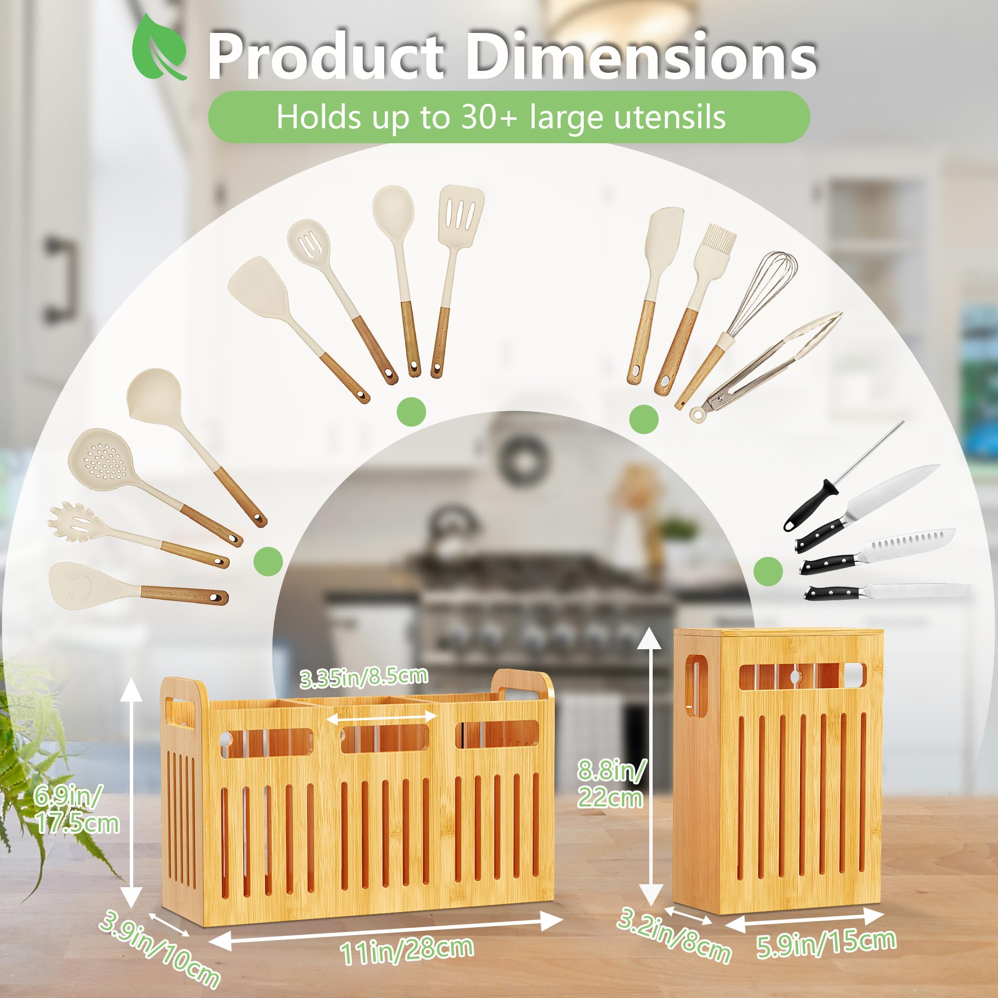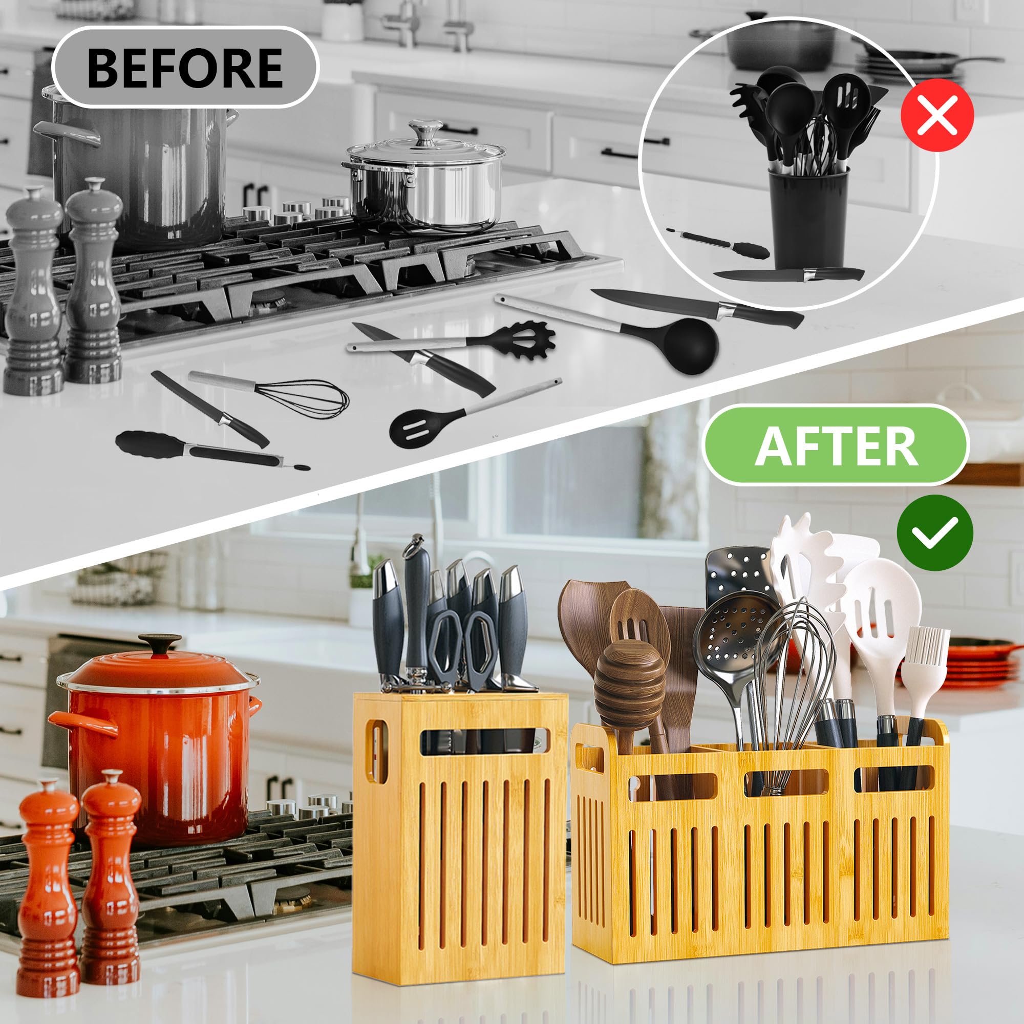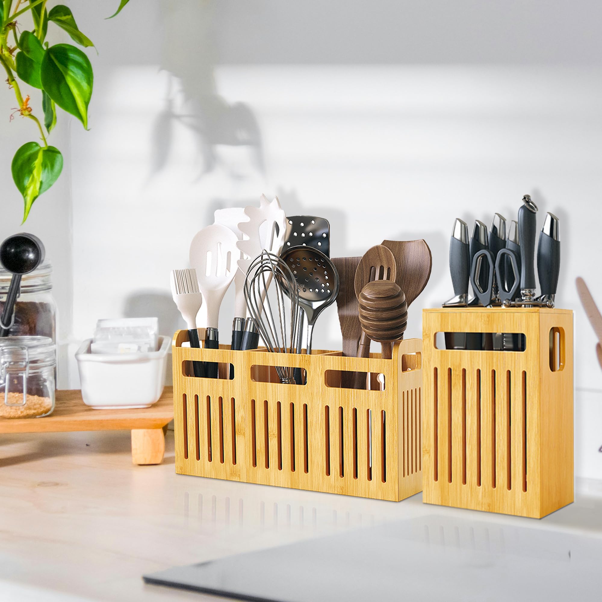 Bamboo Utensil Holder Set For Kitchen Countertop