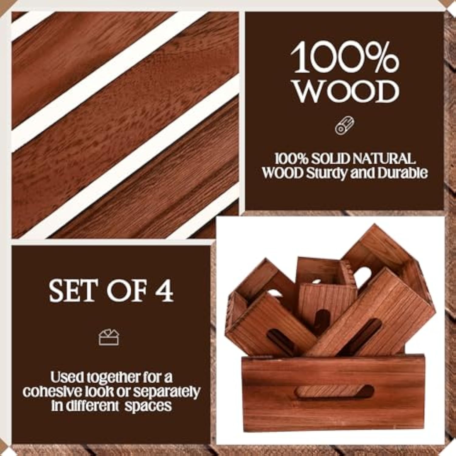 Rustic Style with Practical Handles: embodying a rustic crate style with cutout handles, these square wooden cake stands for dessert table are more than just functional, but also statements in style; They convey a sense of charm and simplicity, and the handles makes them easy to move and carry