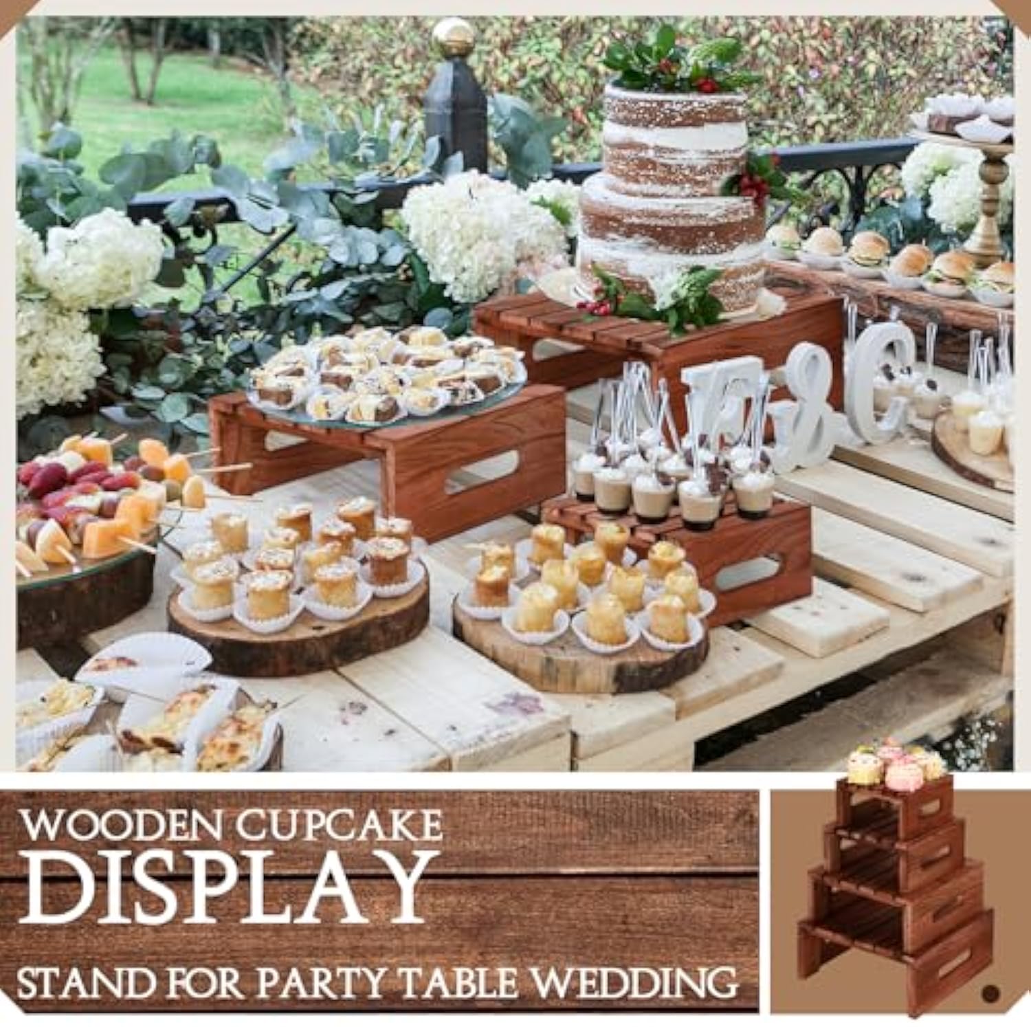 Versatile Features: this rustic wood cupcake stand brings a secure hold and beautiful display for your cakes; These dessert table food stands can showcase a variety of desserts, from cakes, snacks, pies to cupcakes, adding a touch of sophistication and taste to different occasions from an elegant wedding to an informal gathering