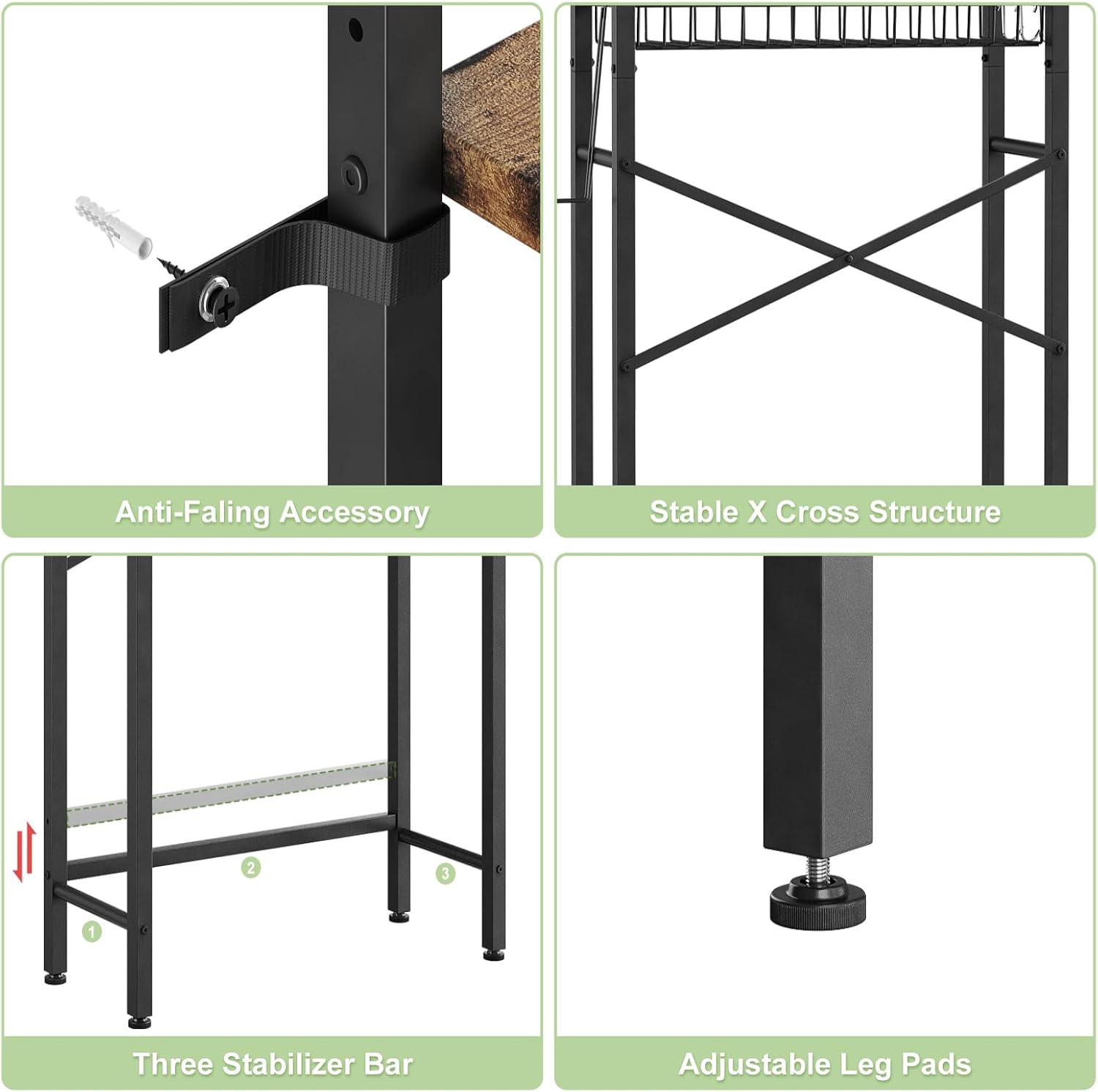 [High-Quality & Style Go Beyond] 4-Tier-over-the-toilet storage rack Constructed with P2 particleboard thick wood panels and a sturdy metal frame, our shelf offers excellent stability and durability for daily load-bearing needs (up to 30 lbs per layer). The Rustic Brown color exudes a retro charm that beautifully complements the black metal frame. This charming organizer shelf adds a decorative touch to your home while being practical for any room.
