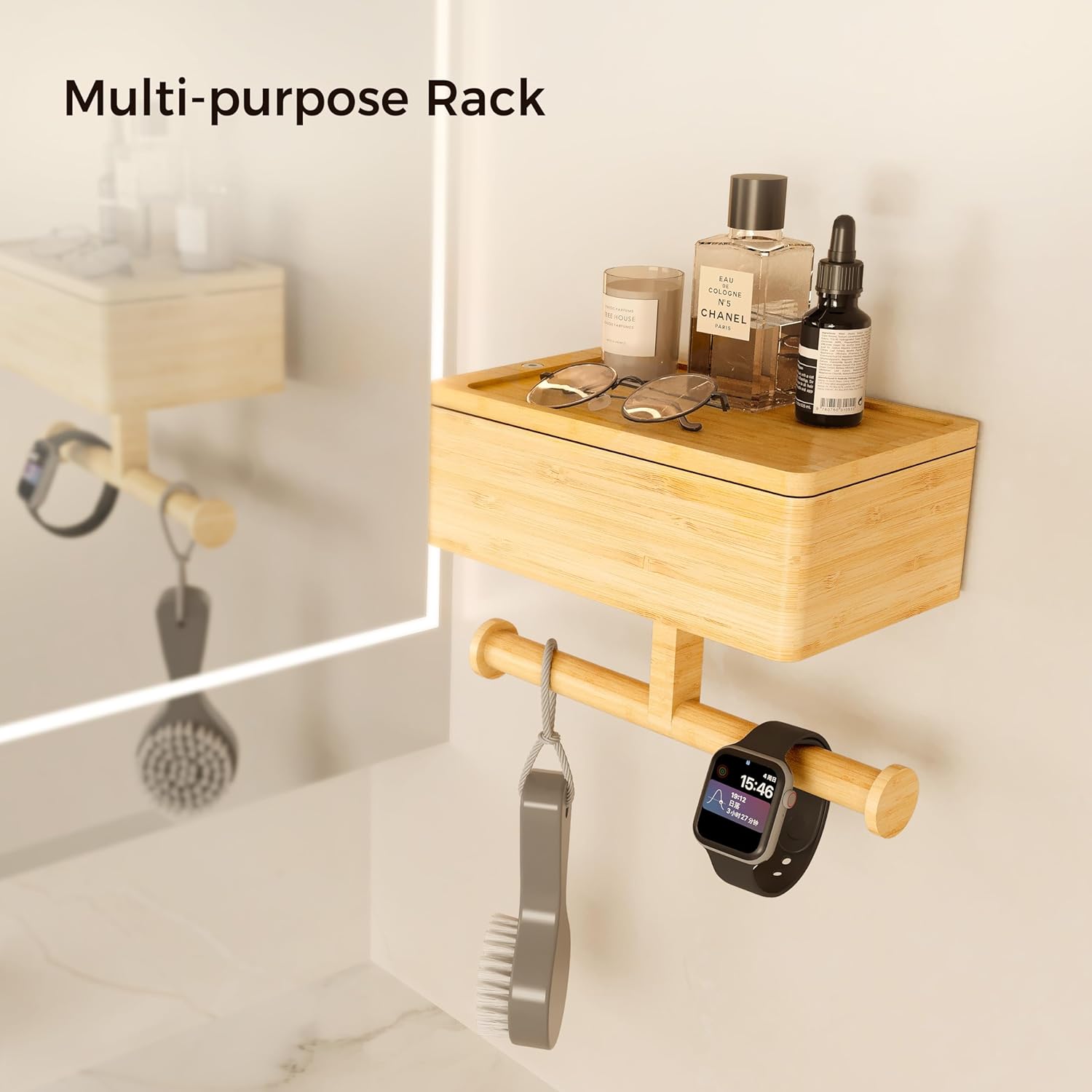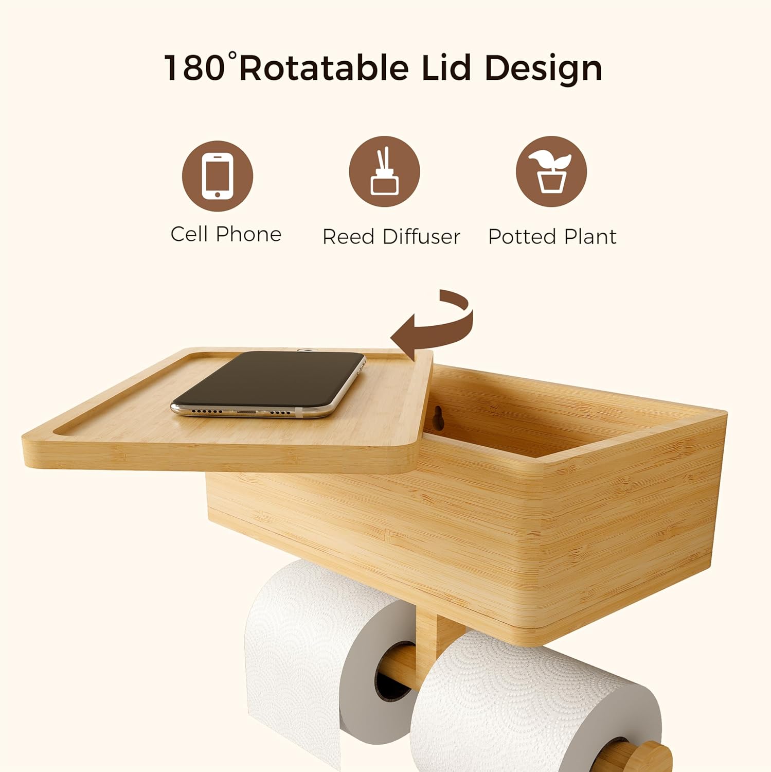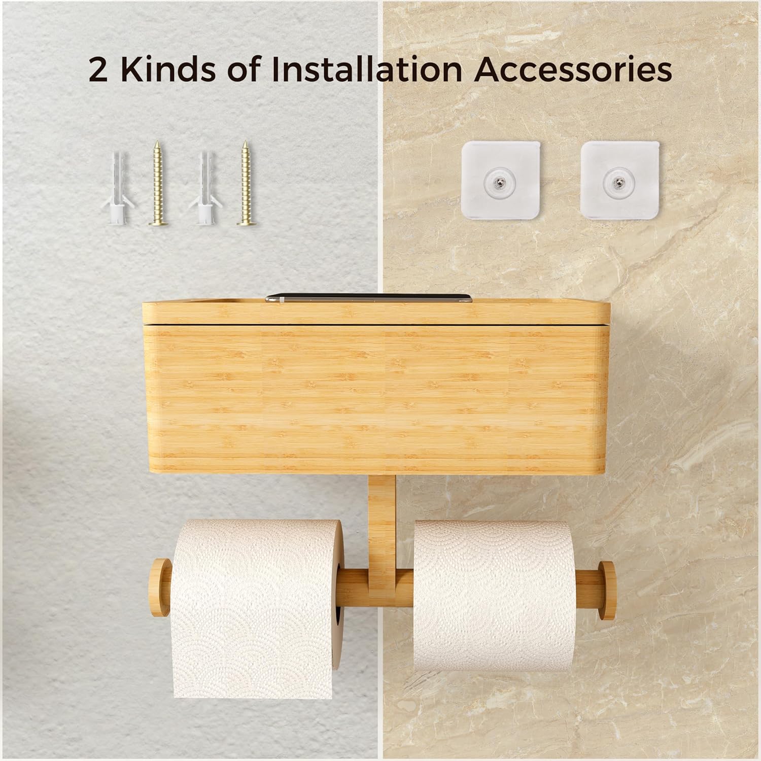 Bamboo 3 in 1 Toilet Paper Holder with Storage Box Bathroom Rack for Tissue and Small Items Wall Mounted Bathroom OrganizerChina Factory