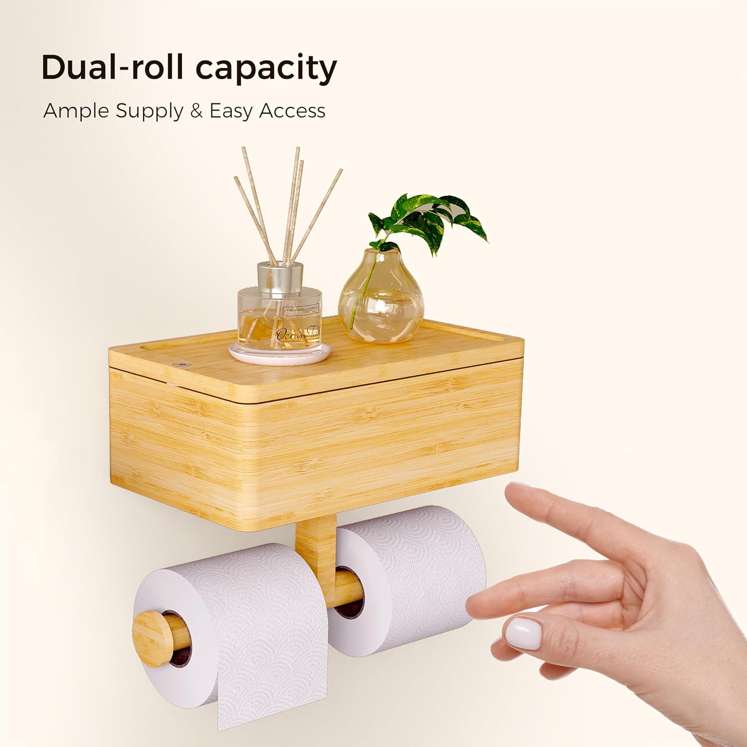 Space-saving solution: Our wall-mounted toilet paper holder features a top storage box and a bottom tissue rack. The top box can store wet wipes, sanitary pads, and other items, freeing up valuable counter or floor space in your bathroom. It's a practical and stylish solution for small bathrooms or those looking to maximize space efficiency.