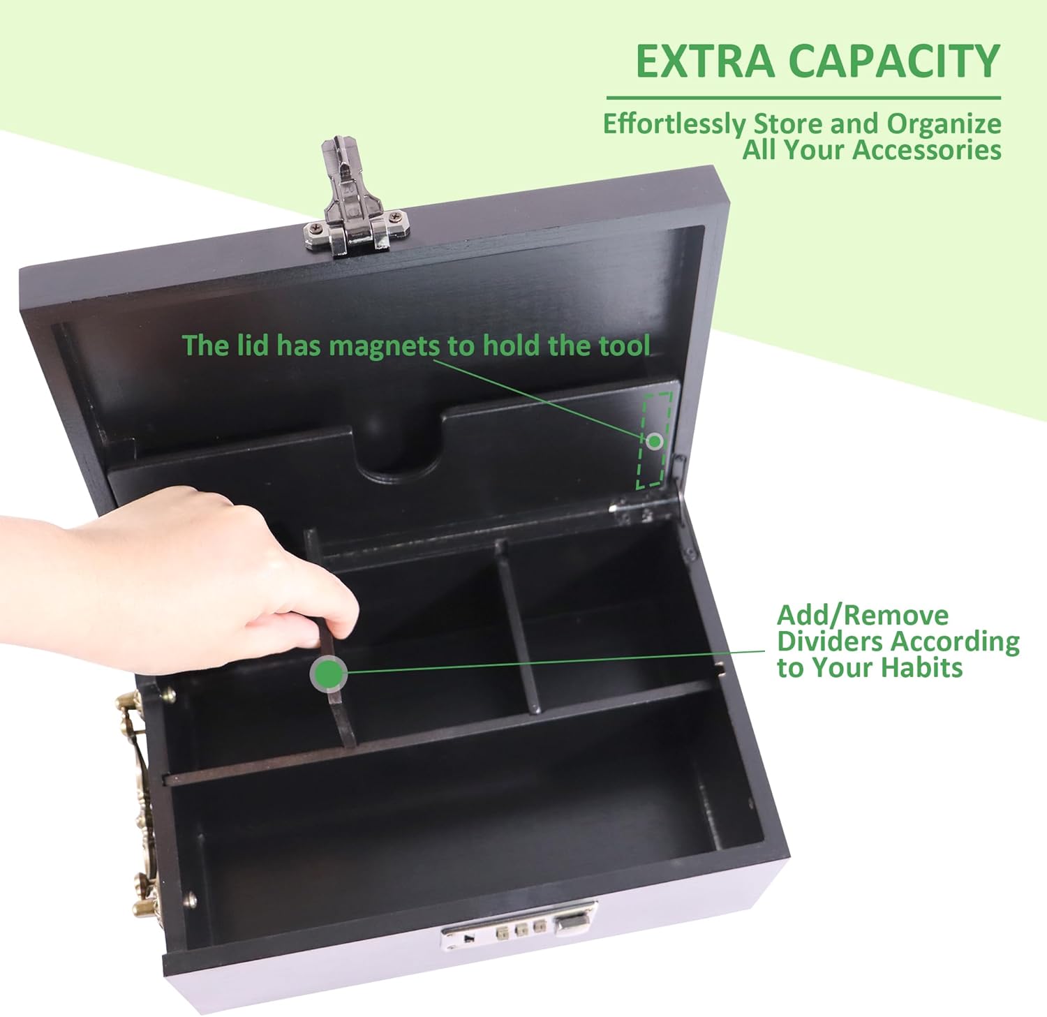 【LOCKABLE ORGANIZER】The best things are kept secret, the built-in combination lock will safely and securely store your valuables and the strong hinges ensure easy opening/closing. Note: The default combination is 0-0-0 and you are free to set your own password.