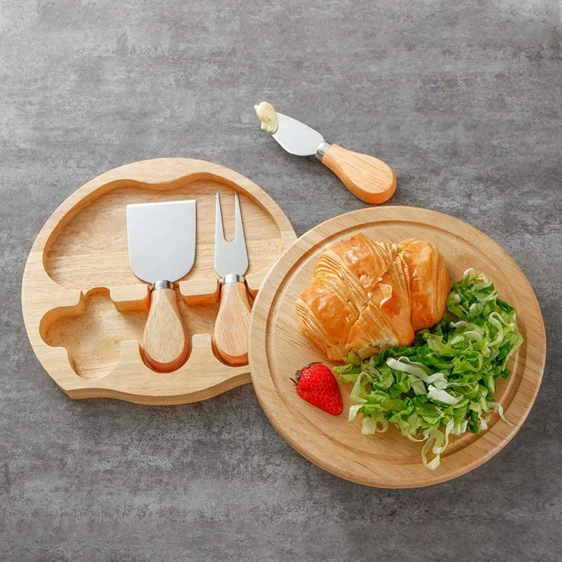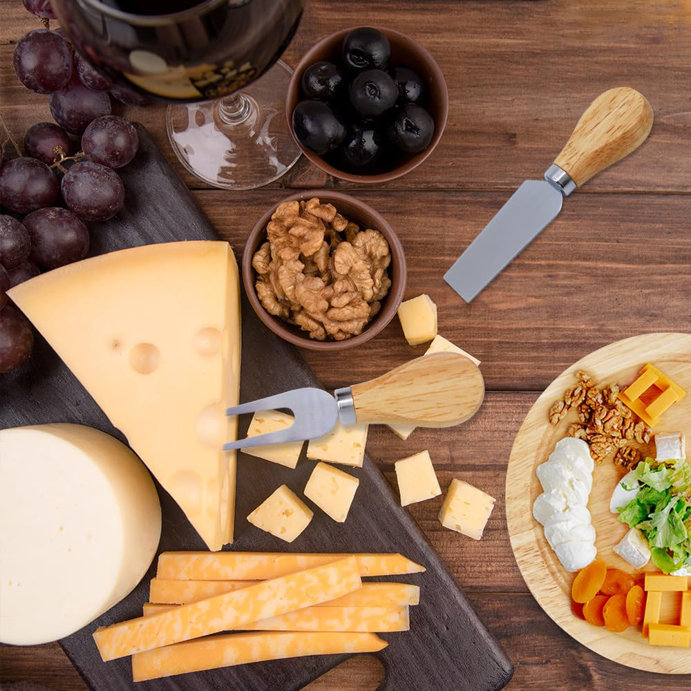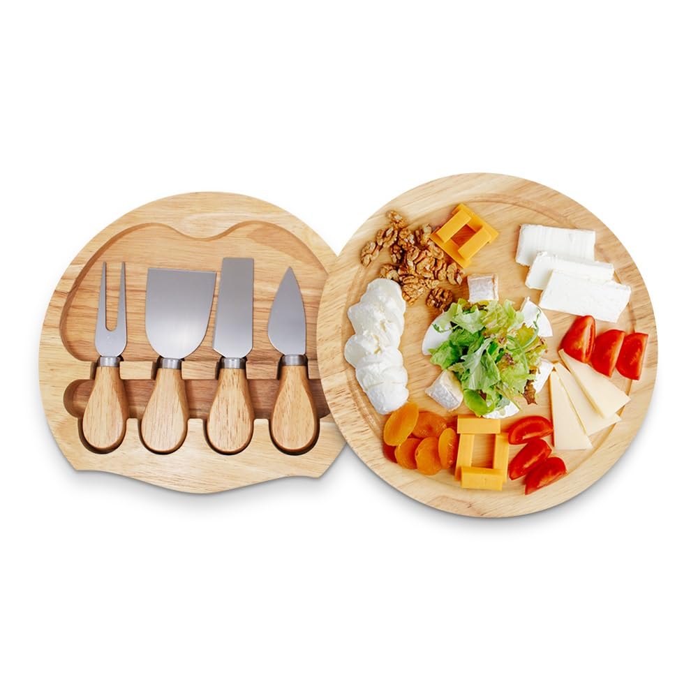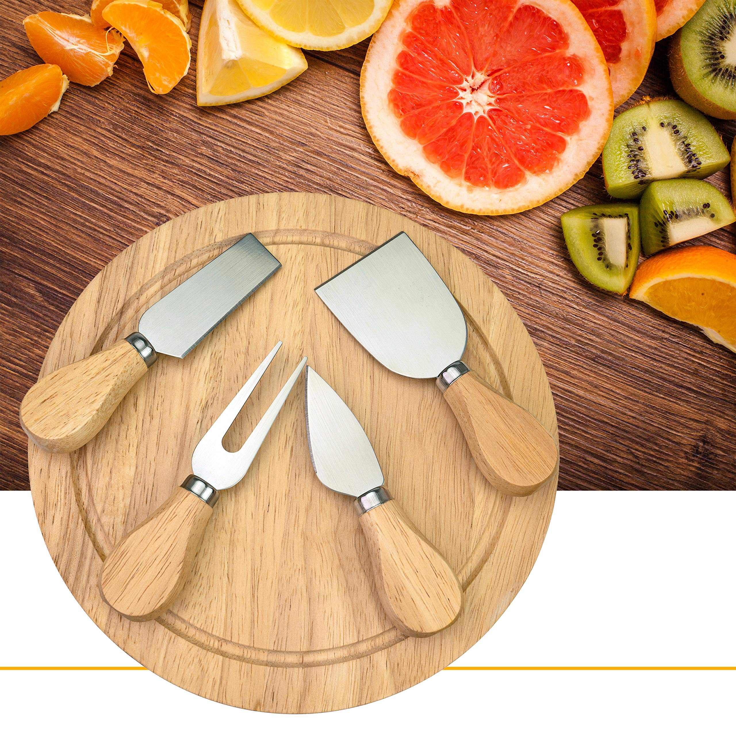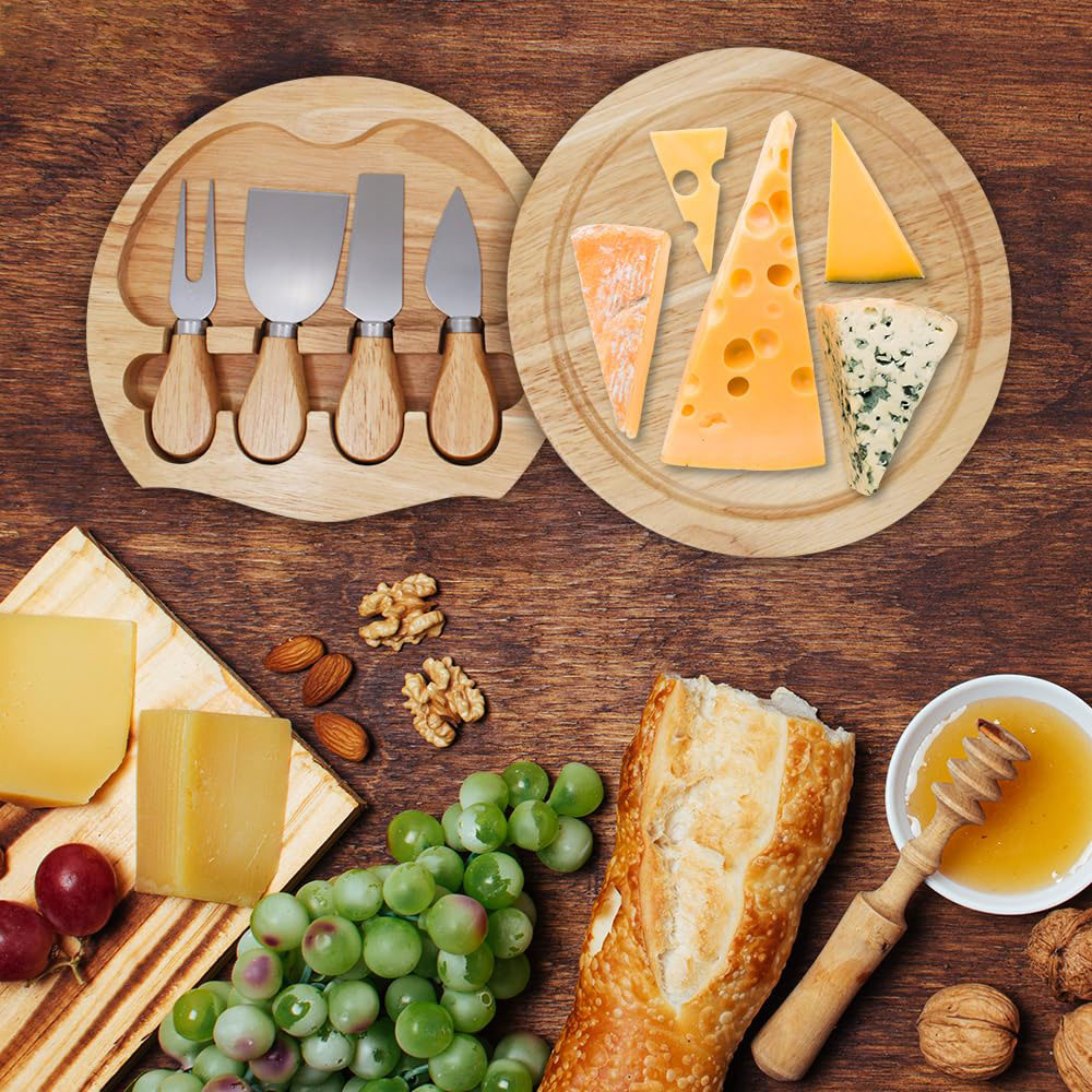 PREMIUM QUALITY KNIFE MATERIALS SET: Our cheeseboard knife set is crafted from high-quality bamboo and does not absorb the smell of food. This cheese tray boasts durability and adds a touch of natural beauty to your table. The included stainless steel knives are thoughtfully designed for cutting and serving a variety of cheeses, ensuring a seamless experience for both host and guests.