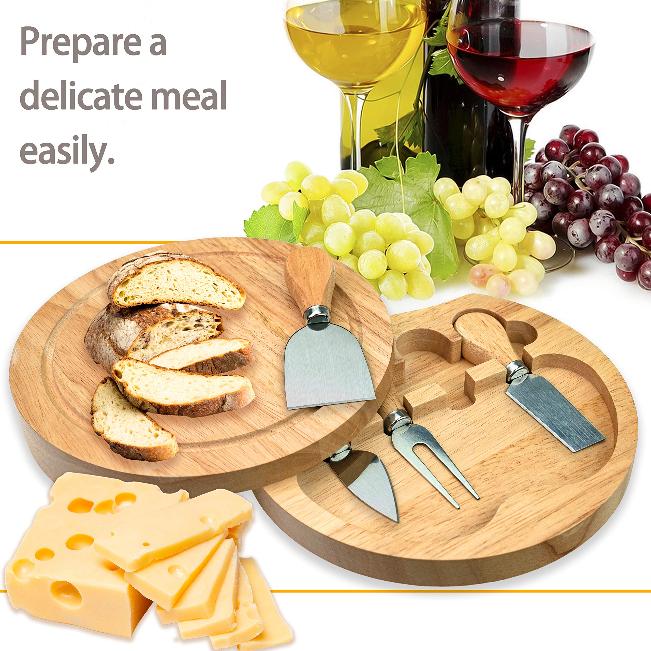 ROUND KNIFE SET ELEGANT SERVING EXPERIENCE: The cheese board set slide-out hidden drawer optimizes your dining space. Elevate your gatherings with our exquisite round cheese boards and knife set. This charcuterie board is a statement piece that adds sophistication to any event. Its round design provides ample space for arranging an assortment of cheeses and charcuterie, turning your serving into a visual delight. They are always at hand when you need them the most.