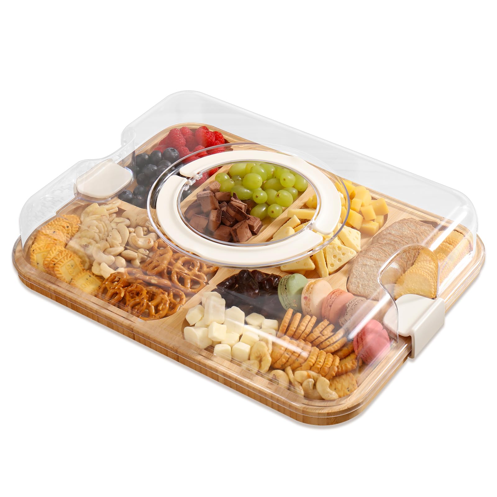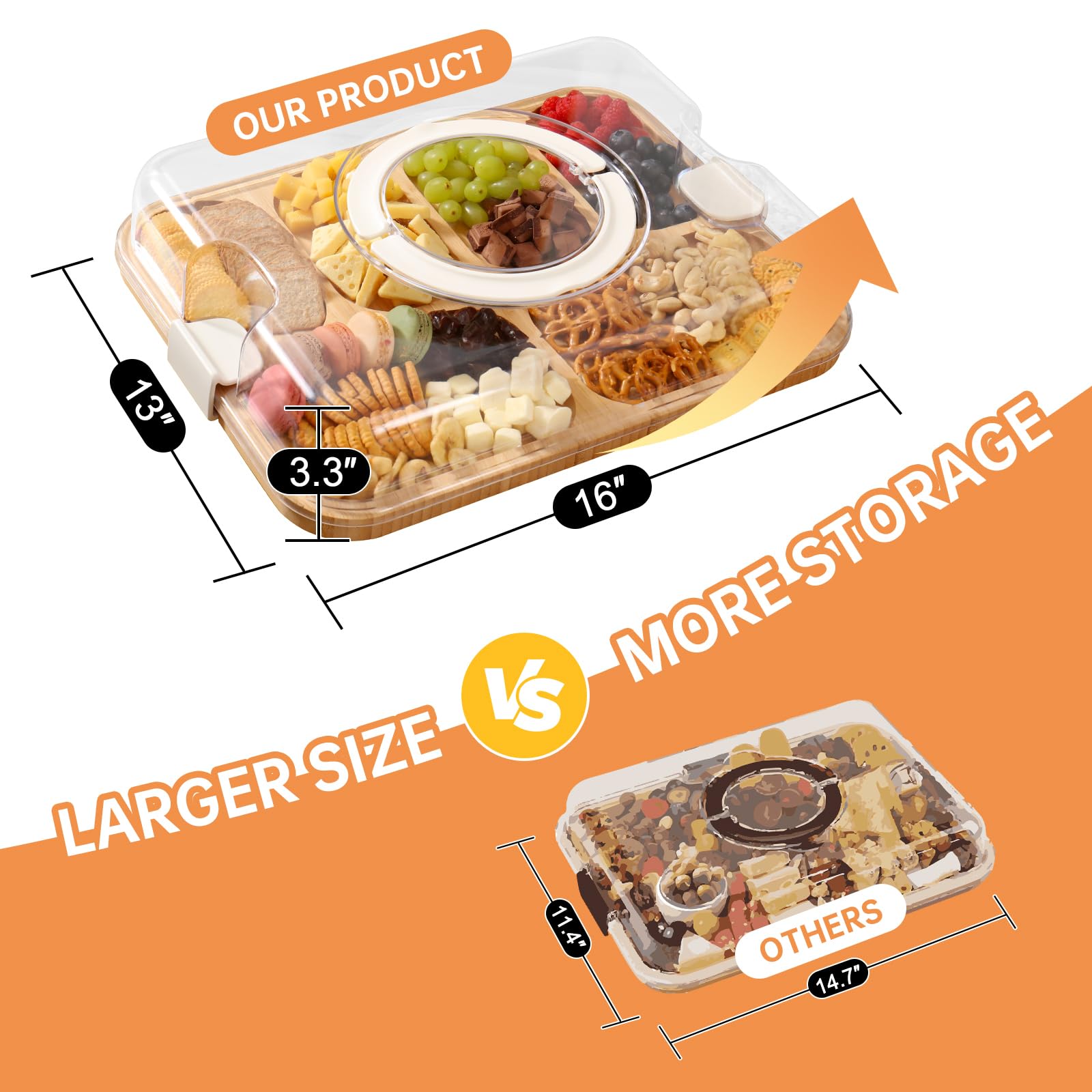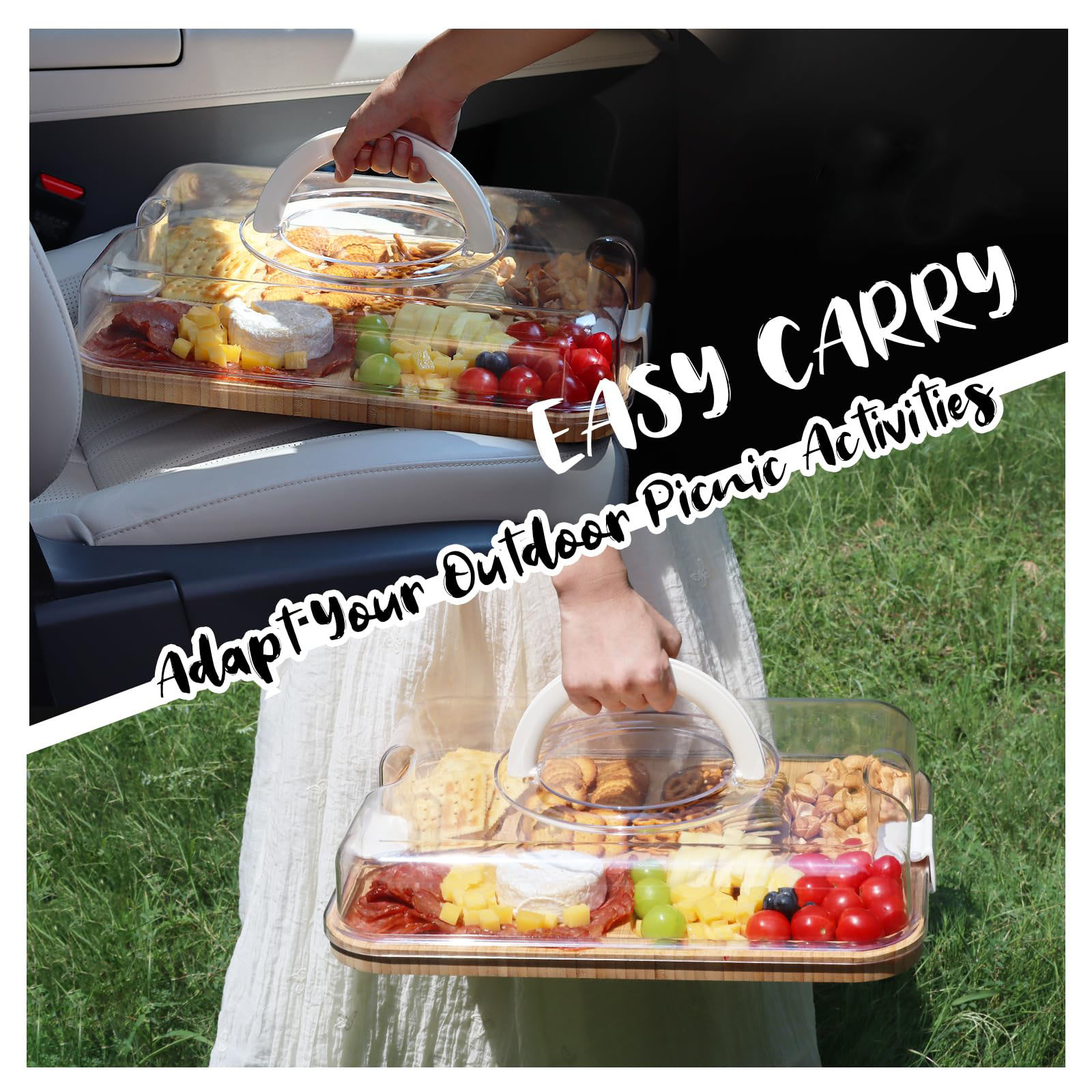 LID WITH HANDLE: The transparent lid is more conducive to food storage and freshness, while the sturdy portable handle design makes the charcuterie boards easy to carry and use. A lid design that is both beautiful and practical for your convenience.