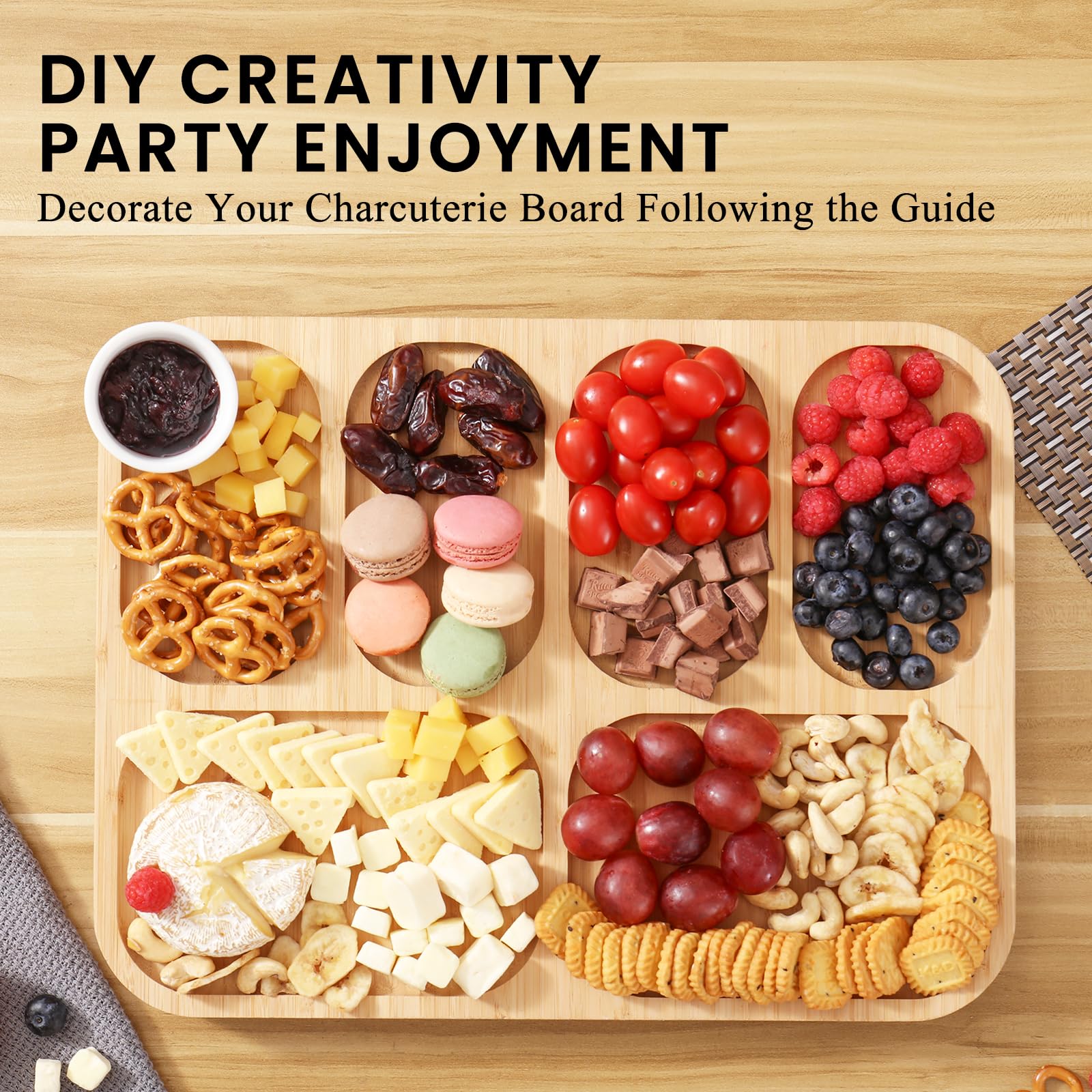 COMPARTMENT DESIGN: The charcuterie board with 6 creative compartments is suitable for people who need to distinguish different ingredients. You can divide different kinds of ingredients into different compartments, such as meat, vegetables, fruits. This design keeps the ingredients from tainting by odor.