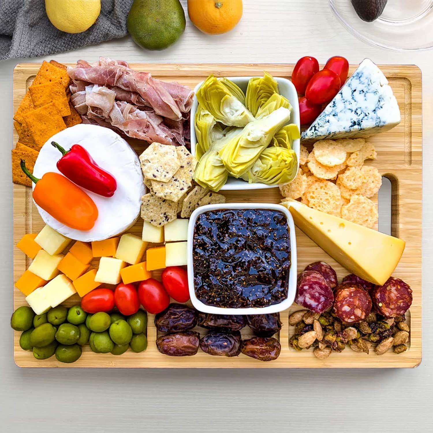 Ergonomic Design:Considering the user's convenience in mind, the bamboo board has been designed with handles that make it convenient to carry. You can hang it or store it in the drawer. Help you to save the kitchen space.