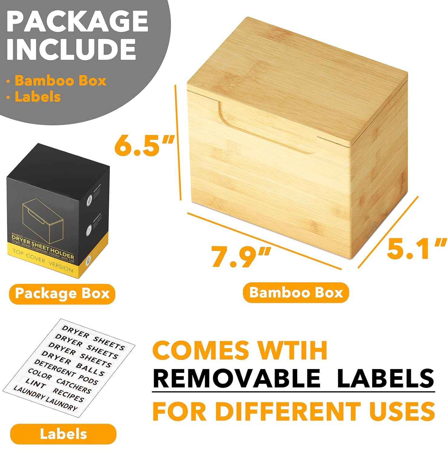 BAMBOO DRYER SHEET HOLDER: Make your laundry room beautiful with this bamboo box. Say goodbye to the different colored cardboard box