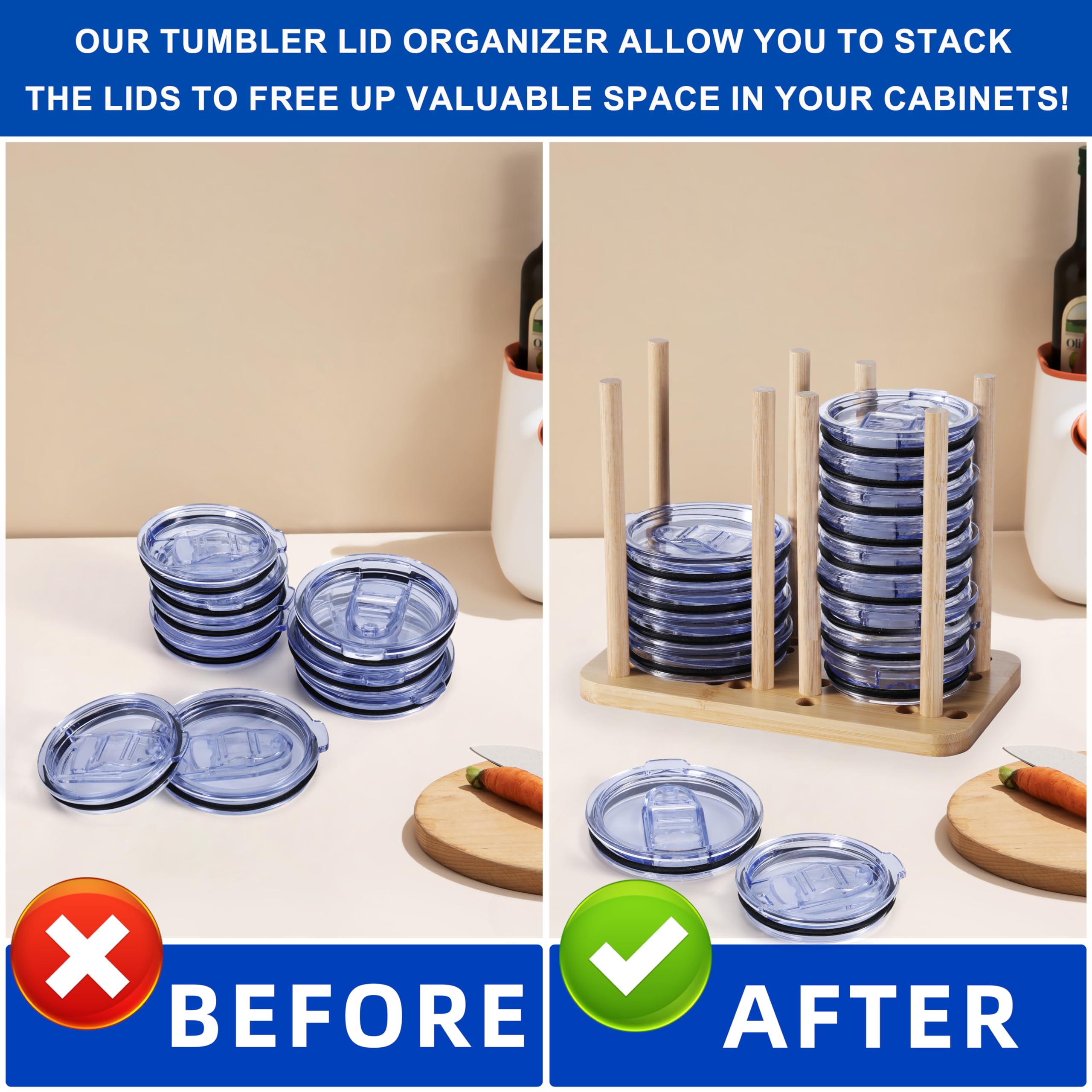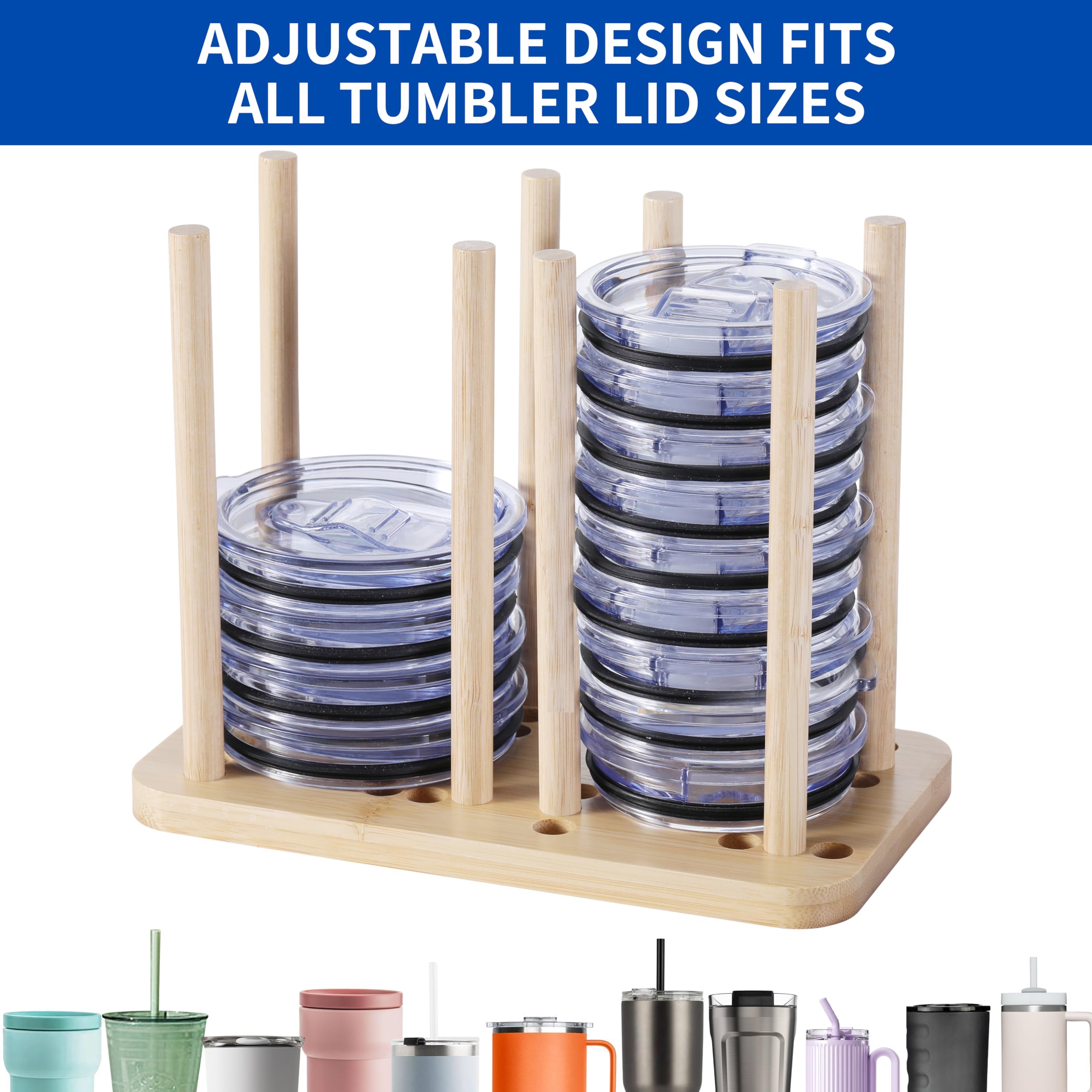 Bamboo Lid Storage Rack For Tumbler Clutter-Free Kitchen Cabinets And Countertops Organization China Factory Directsales