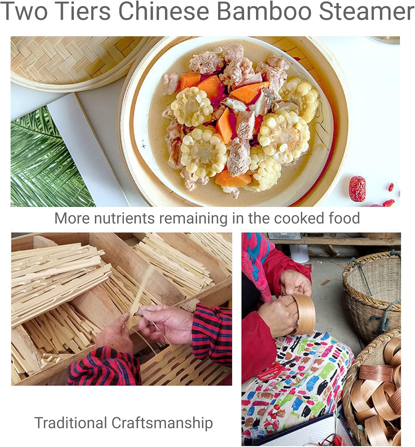 Healthier Cooking: Cooking with bamboo steamer is healthier than boiling because the water-soluble nutrients won’t be leeched from the food into the water. Great for Steaming Dim Sum, Wonton, Seafood, Vegetable, Bread, Bun, egg, Dumpling, Shaomai, chicken, rice and more.