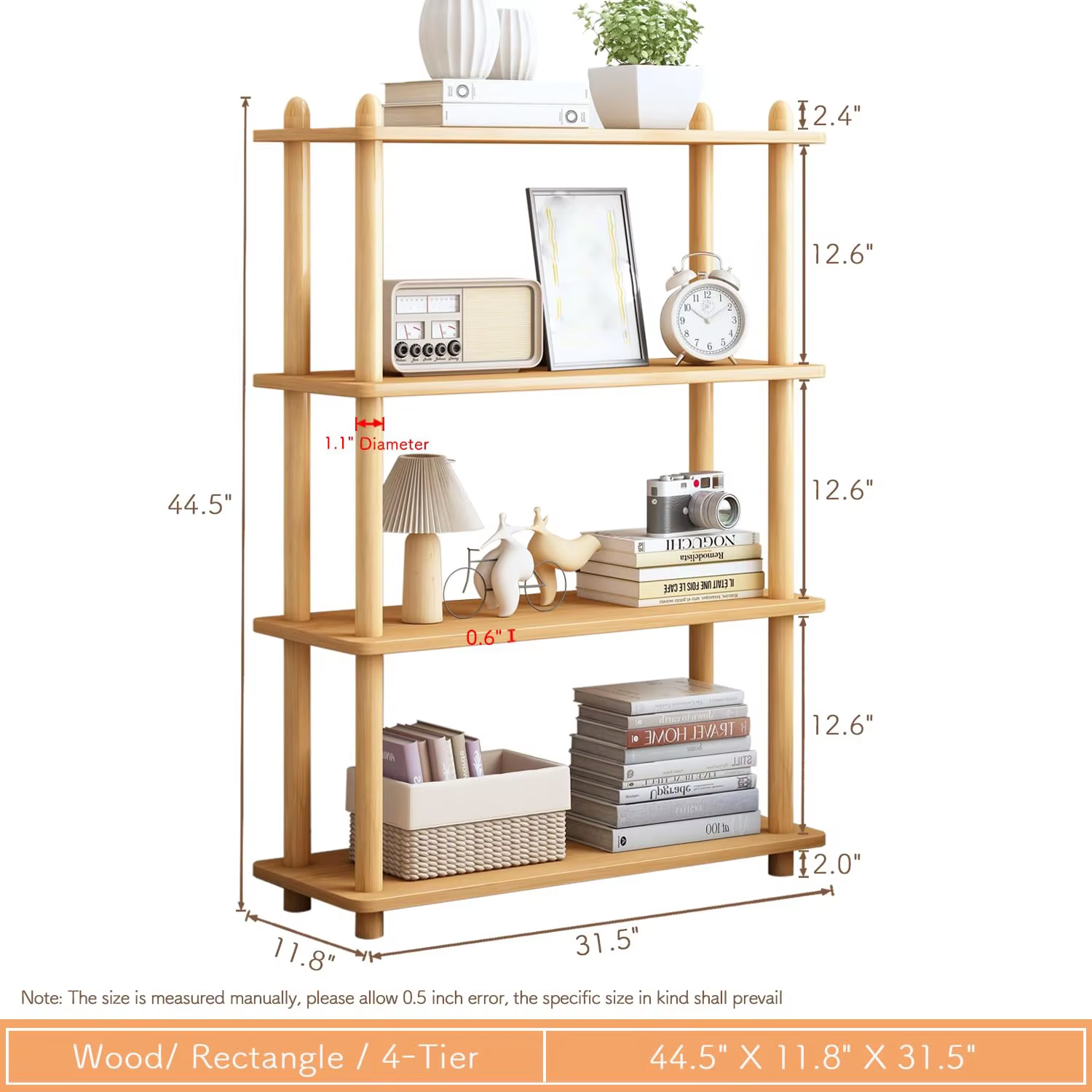 thickened (0.63 inch) MDF shelves, which ensures the whole wooden bookshelf is robust, stable, and durable;