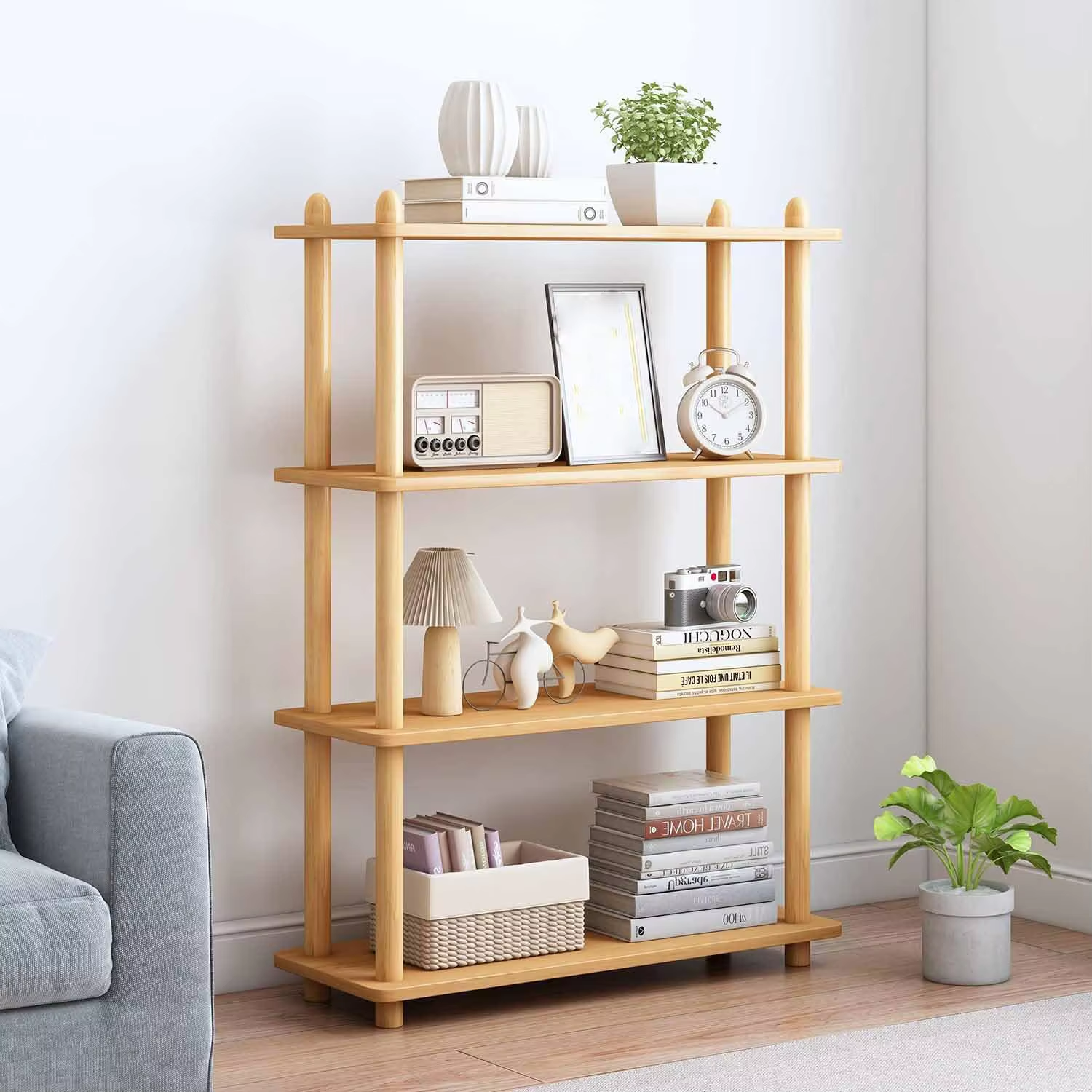 China Factory Direct Supplier 4 Tier Bamboo Bookshelf Modern Open Bookshelf Free Standing Storage Rack