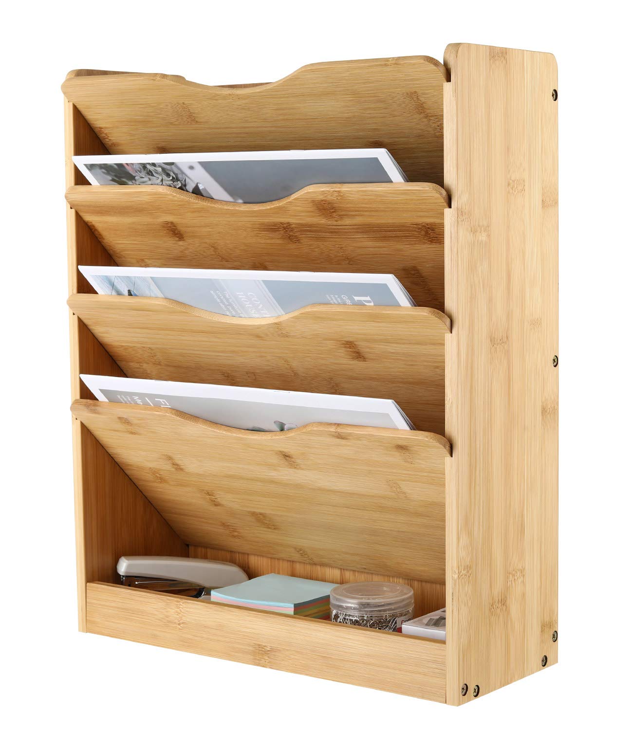 5 Tier Bamboo Wall File Storage Shelf For Mail Organizer