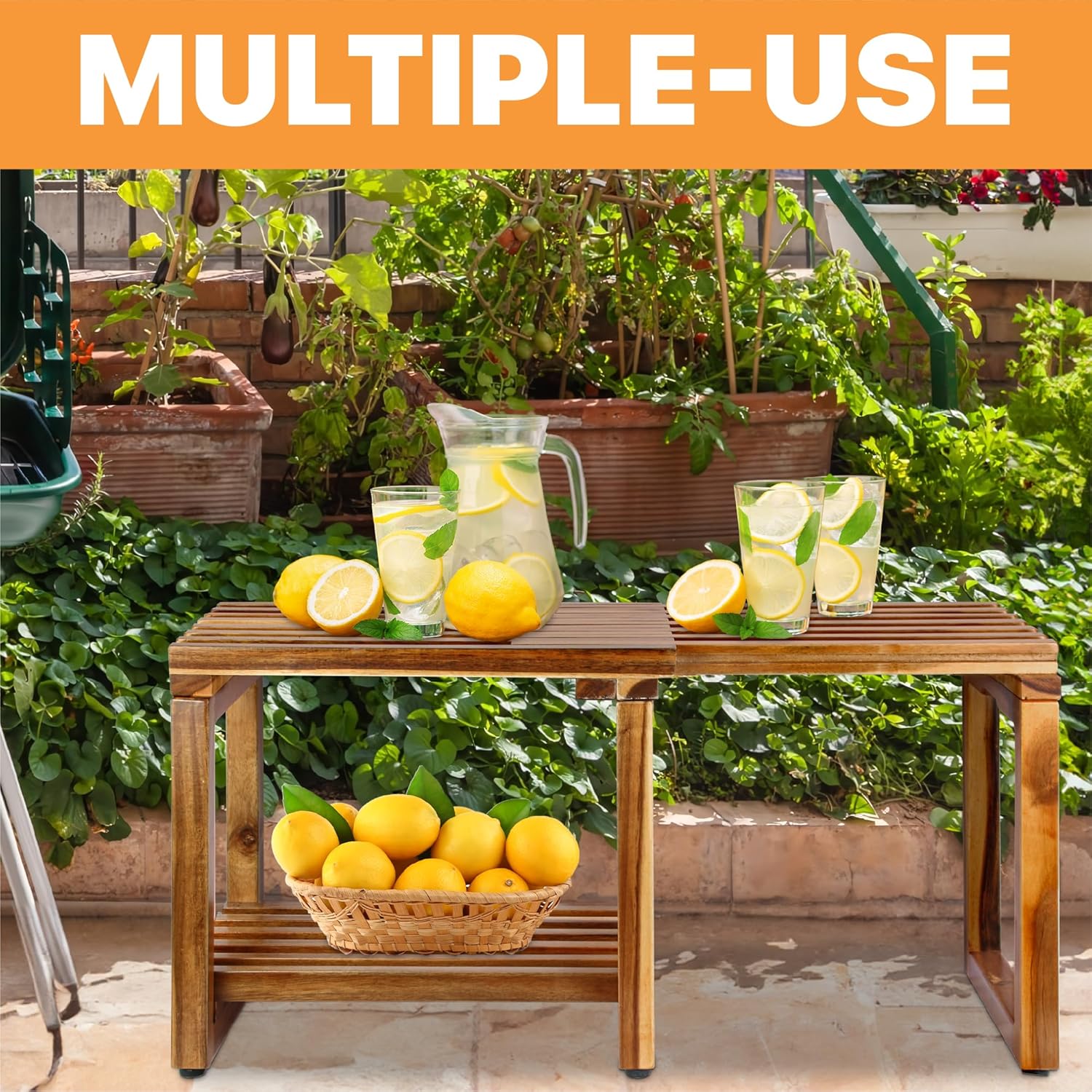 ROBUST AND STEADFAST: Crafted from top-tier solid Acacia wood, our shower bench boasts exceptional durability, waterproof properties, and an impressive weight-bearing capacity of up to 250 pounds. Its versatility allows for use indoors and outdoors, promising unwavering stability