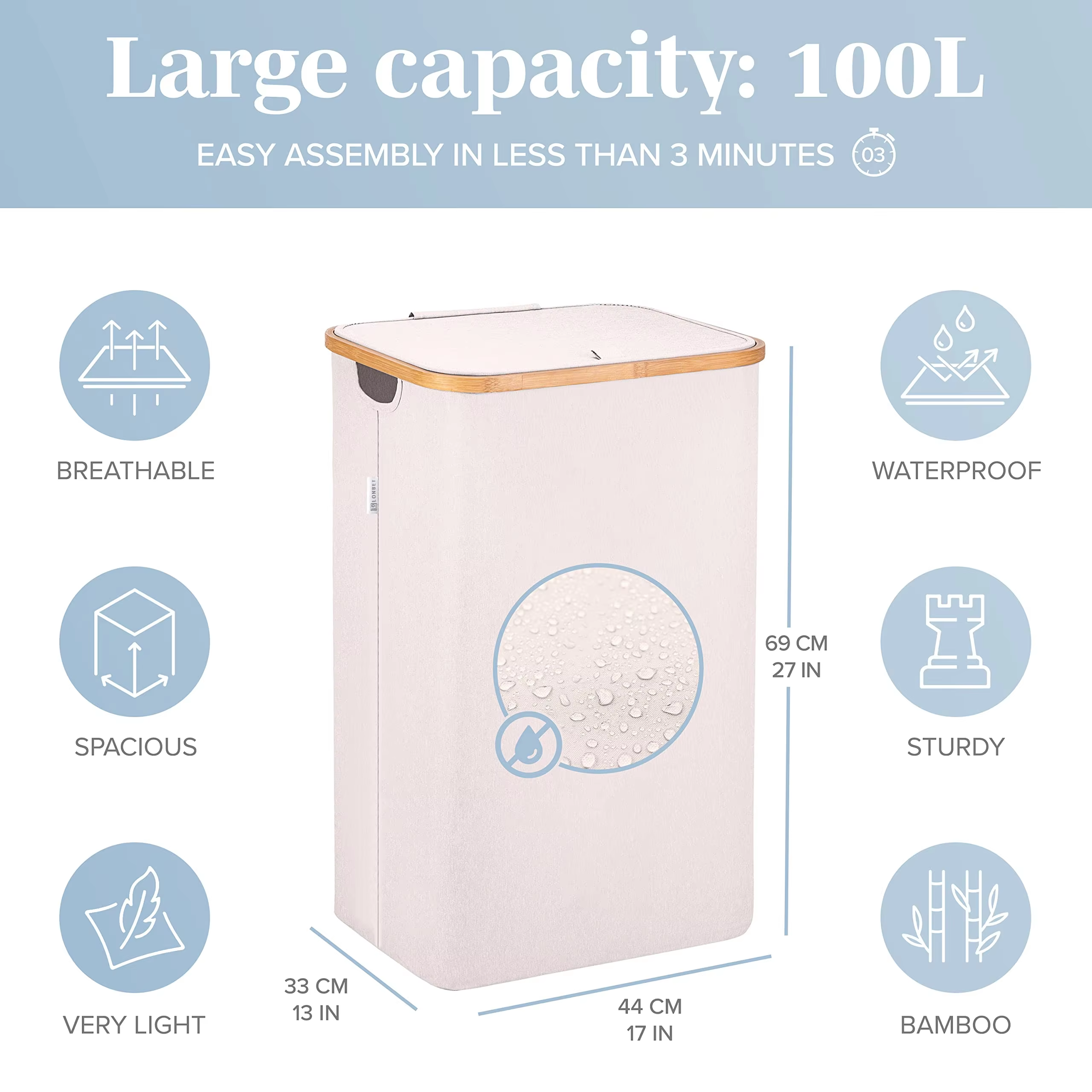 STYLISH HARMONY OF BAMBOO AND FABRIC: Elevate your space with our meticulously designed laundry hamper, seamlessly merging bamboo's strength with fabric's refined touch. Style and functionality.