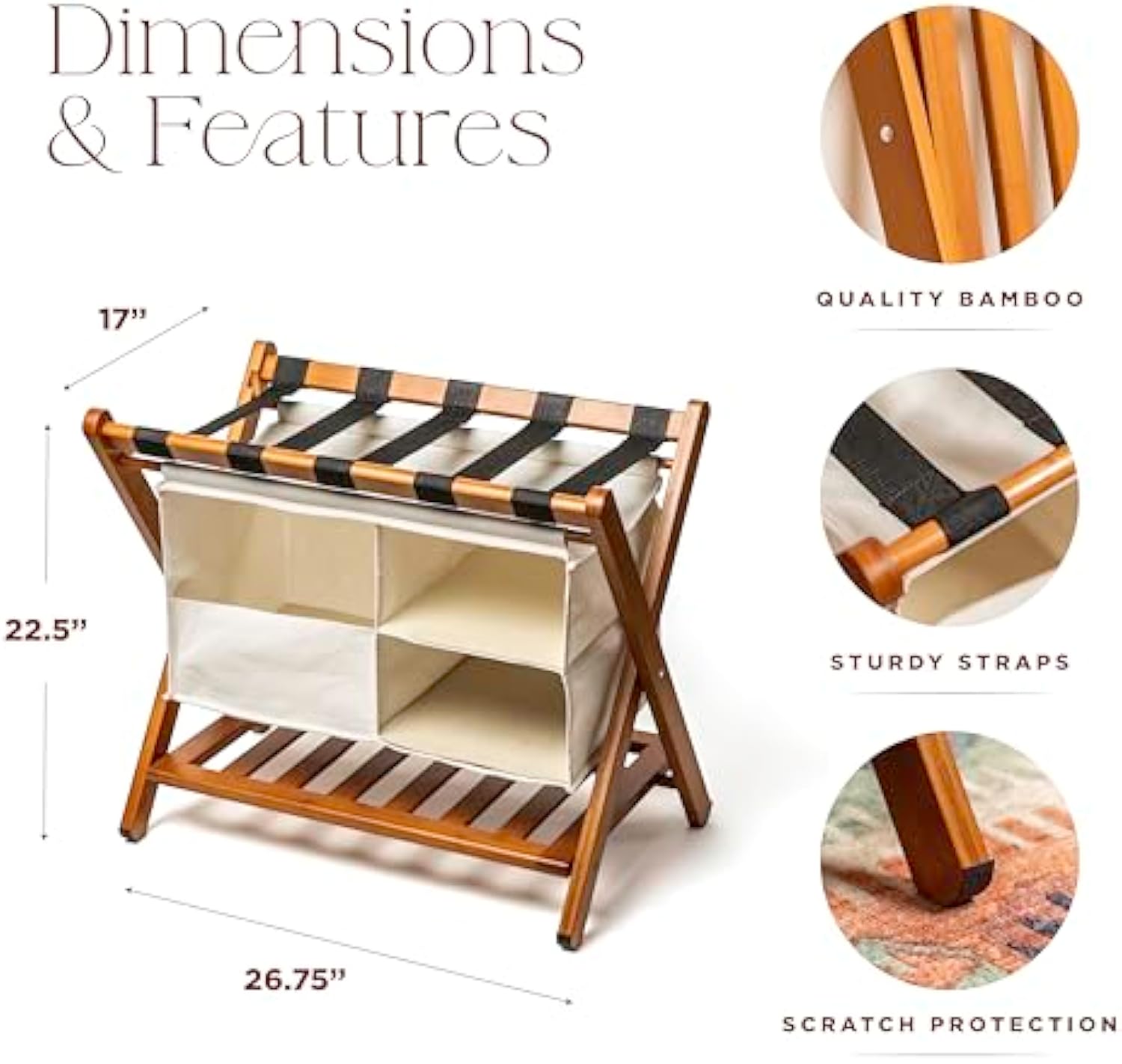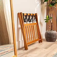 Durable Rack That Adds Style to Any Room: The luggage stand for guest room is made from smooth, natural bamboo that'll blend in effortlessly with any interior; It's also outfitted with heavy-duty nylon straps that can handle loads up to 150 pounds