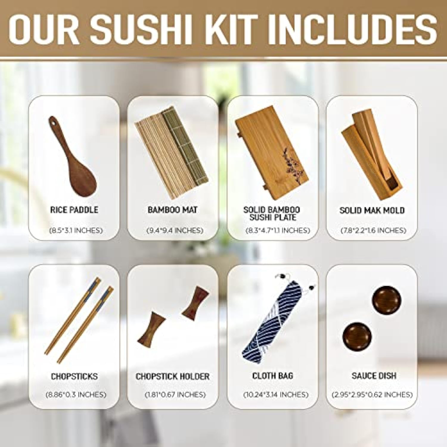 YOU WANT A DURABLE, QUALITY-CRAFTED sushi kit for sushi nights at home – but the average sushi set is made with FLIMSY PLASTIC and rough wood that SPLINTERS EASILY. Constructed out of SOLID OAK WOOD an BAMBOO, our traditional, food-grade Home Sushi Kit for beginners contains ZERO PLASTIC, for a sturdy, long-lasting sushi roll maker that will become A STAPLE IN YOUR KITCHEN