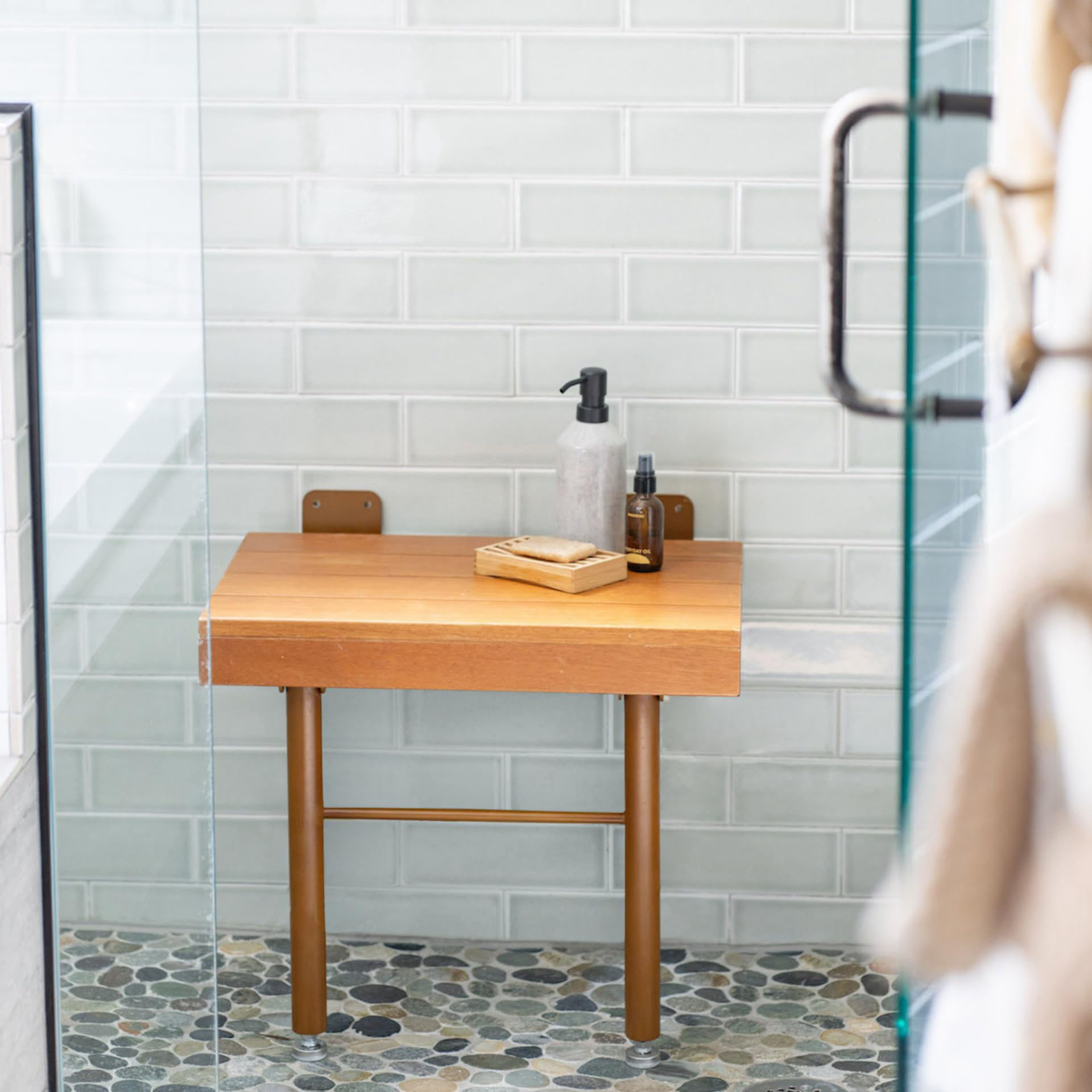 High-quality materials: Our folding teak shower seats are suitable for indoor showers and offer elegance and durability. The teak shower counter resists moisture, while the stainless steel hardware and triple-coated steel legs ensure the long-lasting stability of the wall-mounted shower seat.