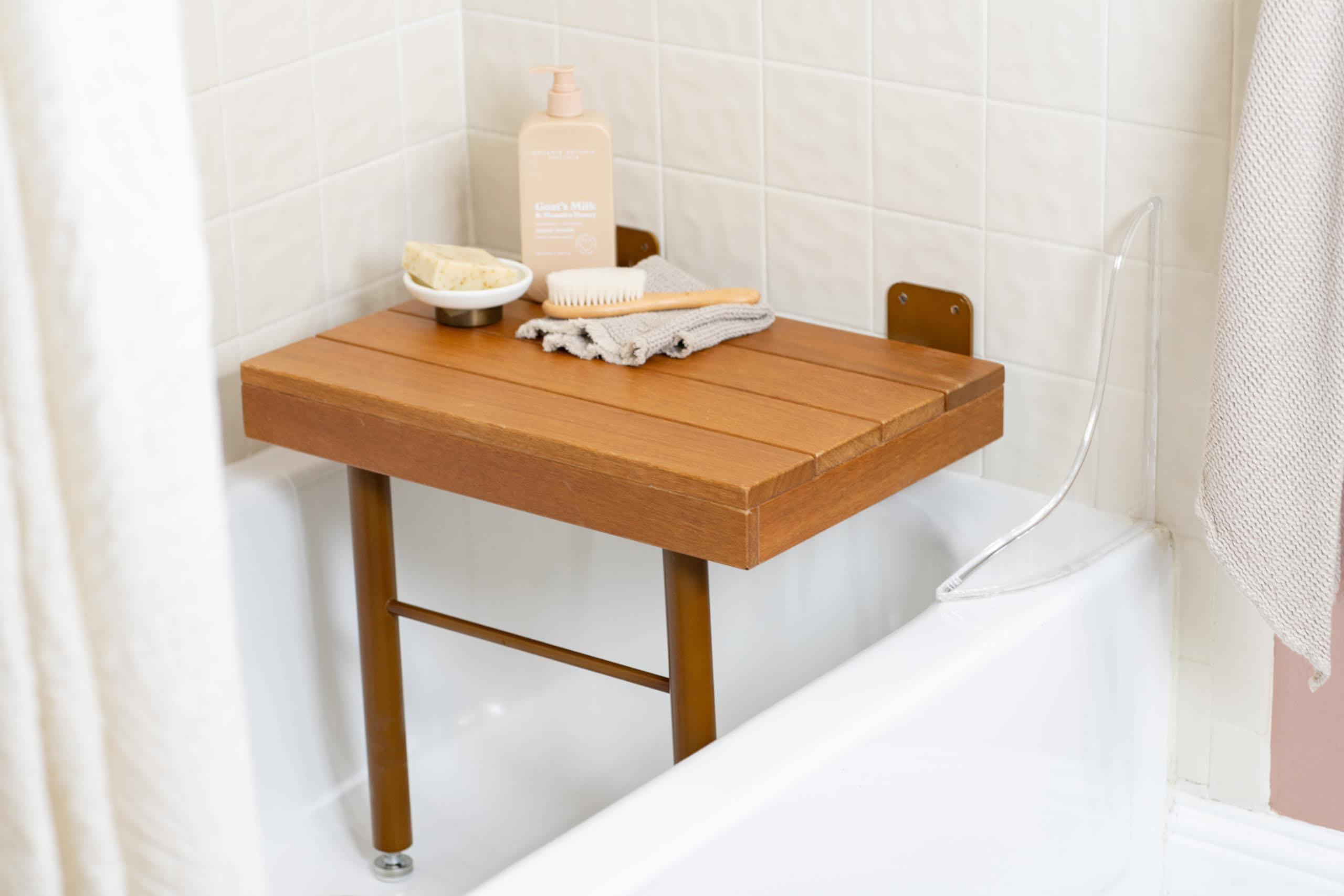 Luxury: Our teak folding shower countertops are designed to: (1) eliminate the industrial "look and feel" and (2) increase the spa-like "look and feel". It's important to consider installing a fold-out shower base on your wall.