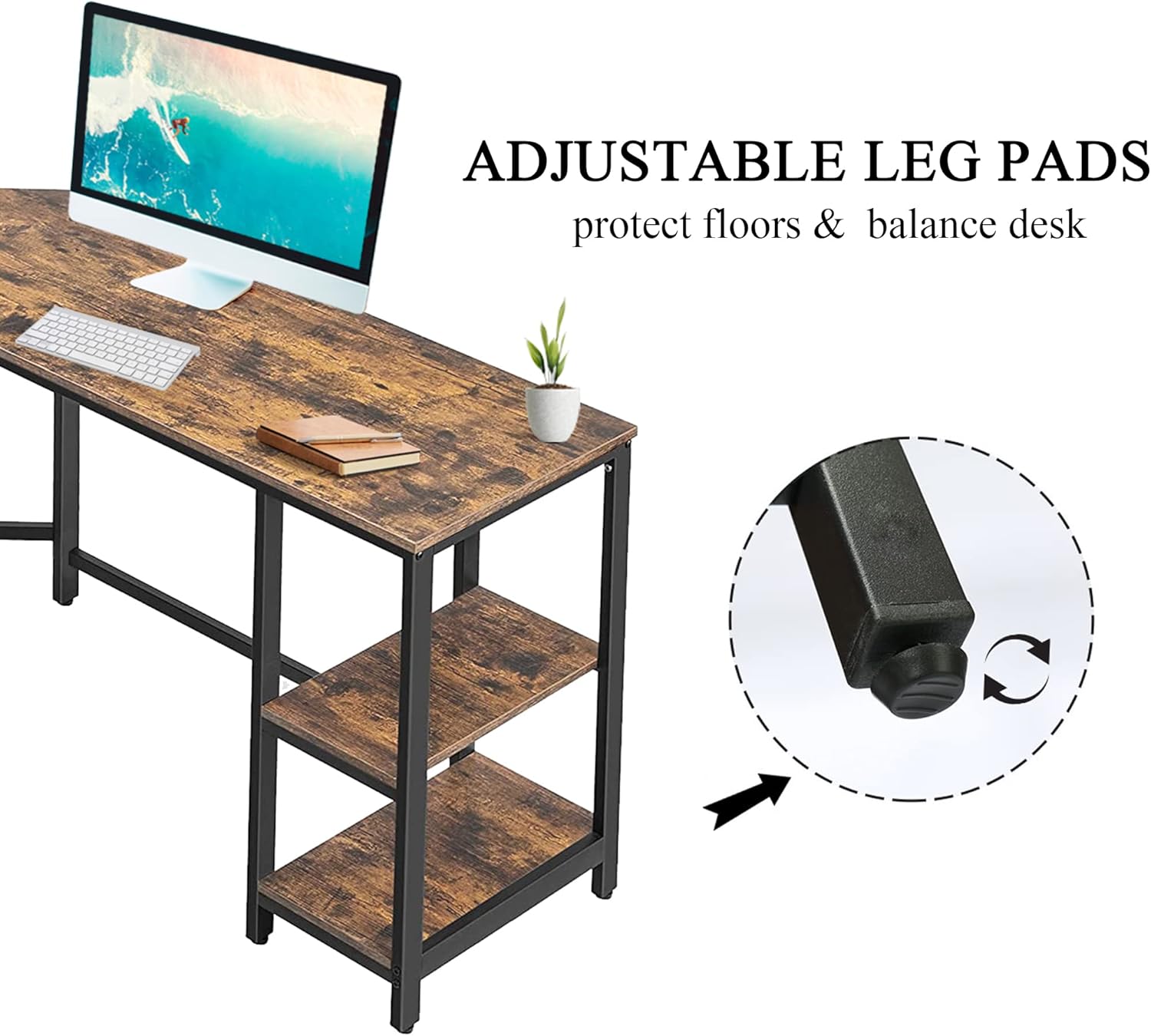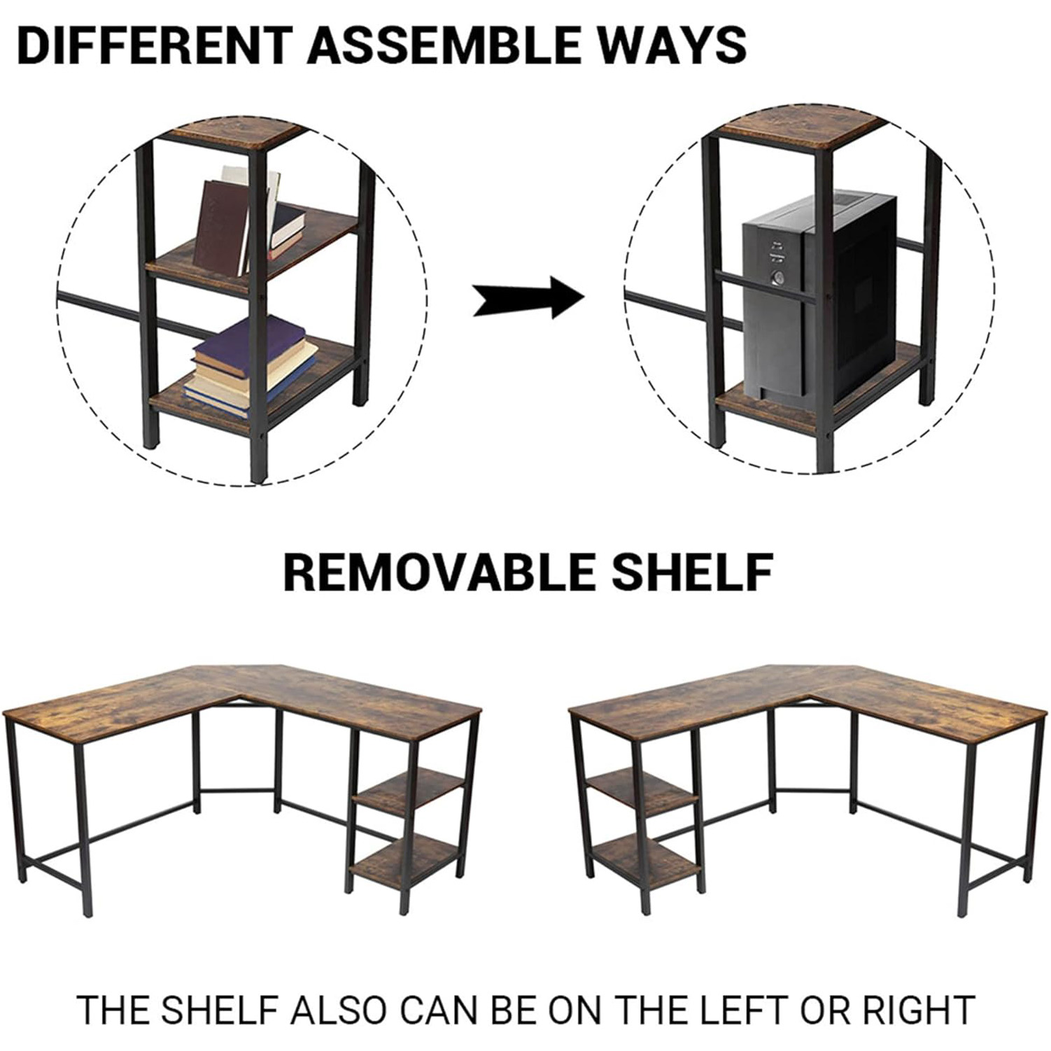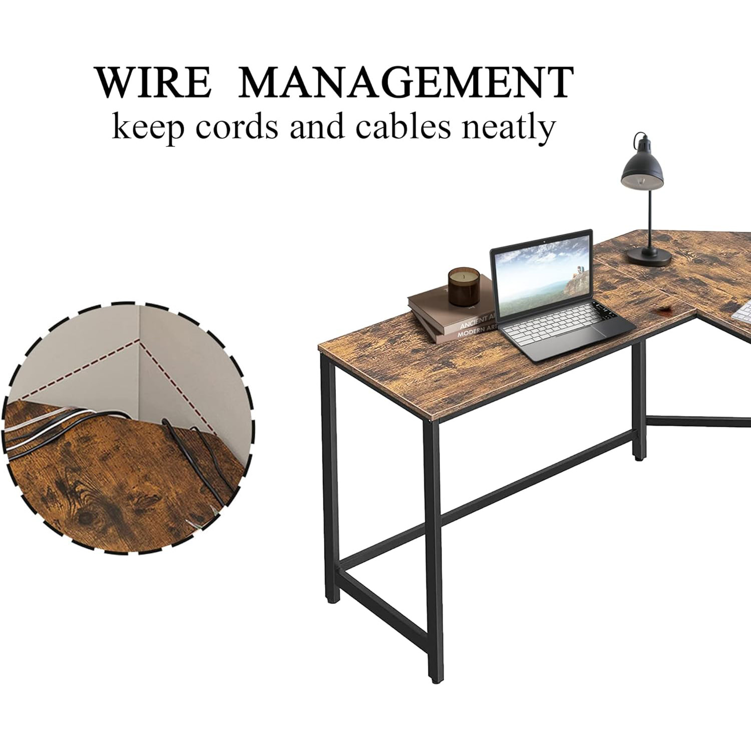 SPECIAL L-SHAPED DESIGN: The l-shaped corner desk design offers a corner wedge to save you a lot of space and multiple storage needs for your home office. You are free to turn sideways, keeping everything you need at hand and easily accessible.We spare a location for you to use wires conveniently,so you can manage the desktop in an orderly manner.
