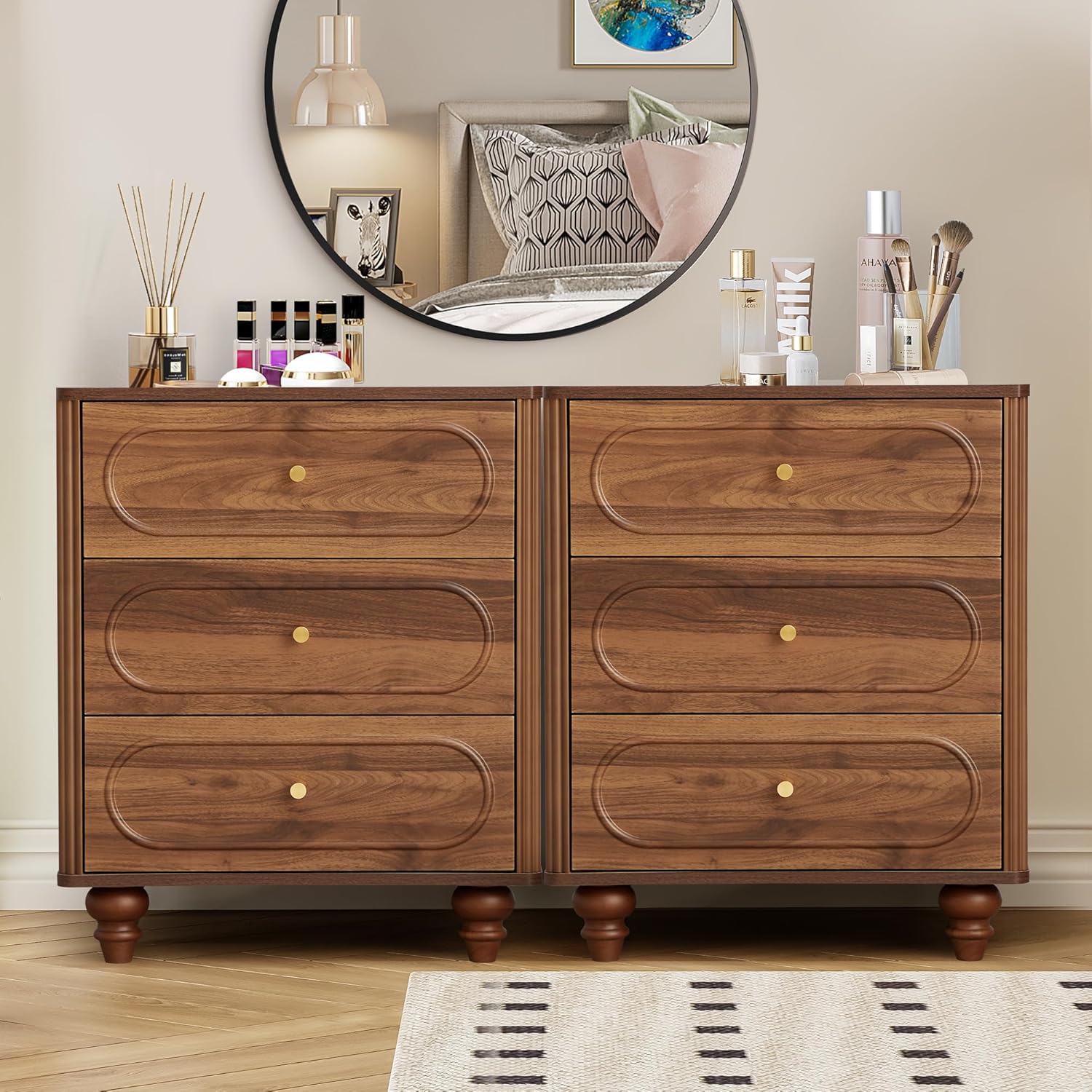 * Mid Century Modern Style: Immerse yourself in the allure of our 3 drawer dresser, featuring a oval overall design and captivating fluted wave on the sides. Unlike traditional drawer dressers, our cabinet legs boast a conical shape, while the surface color beautifully replicates the natural wood tone. Experience a modern and unique aesthetic that effortlessly elevates the entire ambiance of your space.