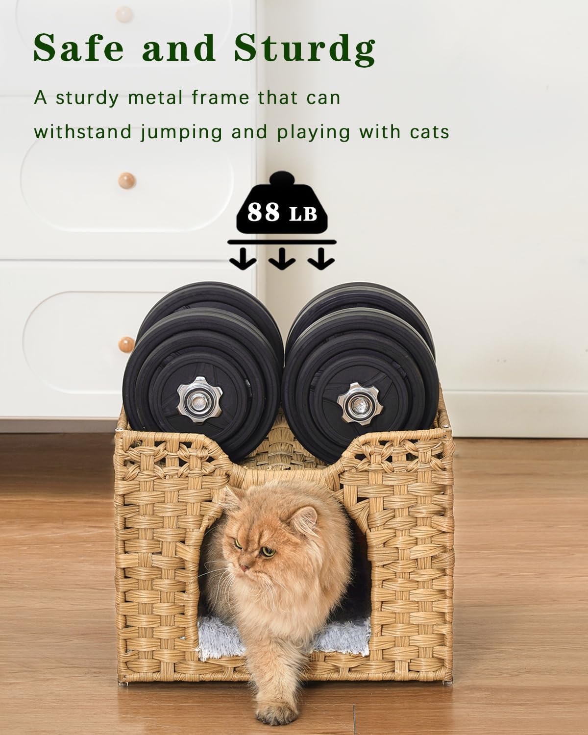 Easy Care and Stylish: The rattan of the cat cubby is waterproof, simply remove the top level to fully clean the interior of the kitten beds for indoor kittens. Keep cats environment pristine with minimal effort. Modern style fits anywhere in the home