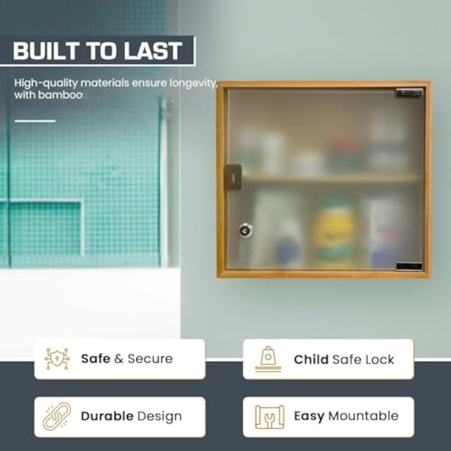 TEMPERED GLASS: To make the cabinet extra safe, this medicine cabinet comes with tempered glass in order to reduce the chance of it shattering.