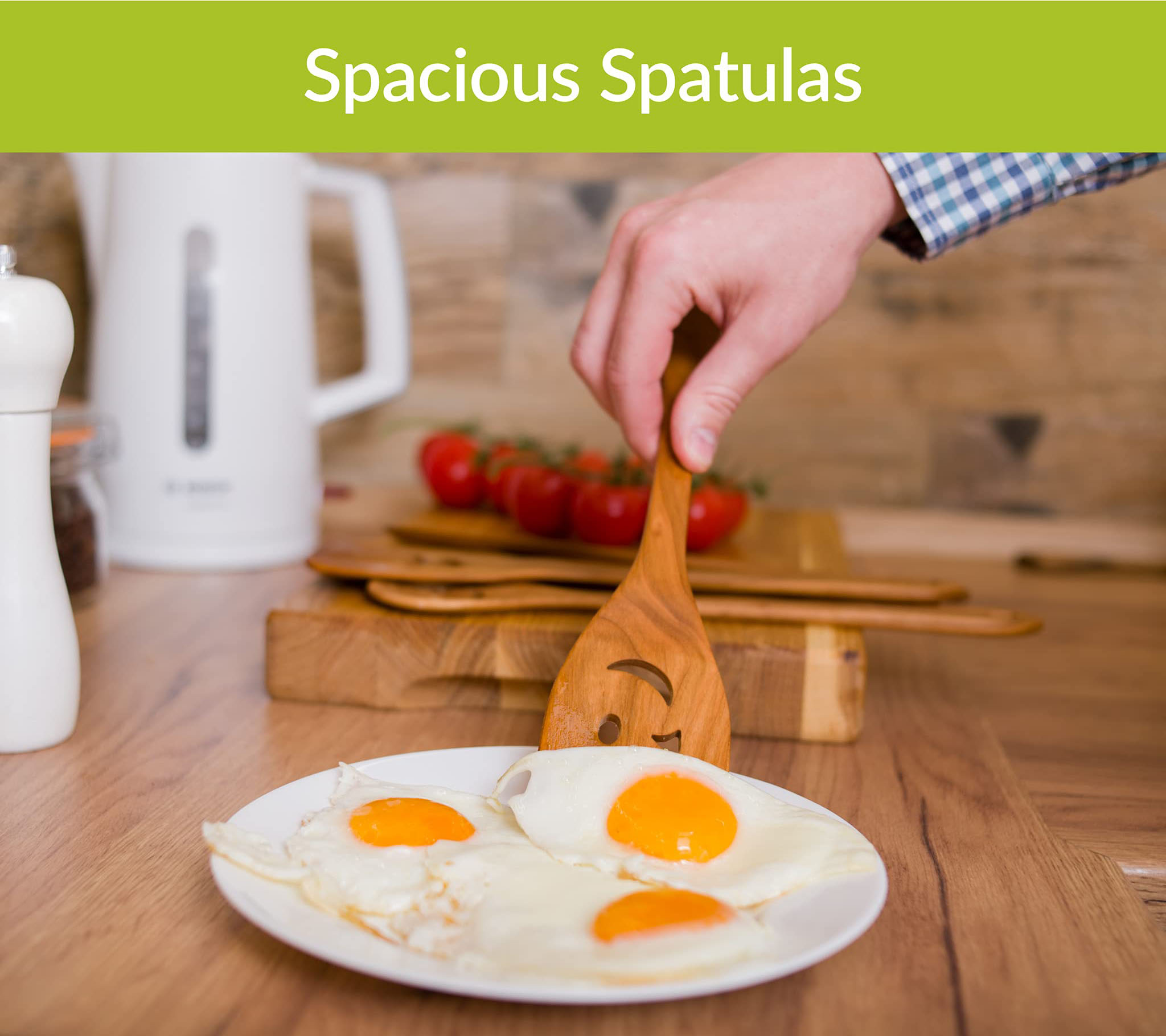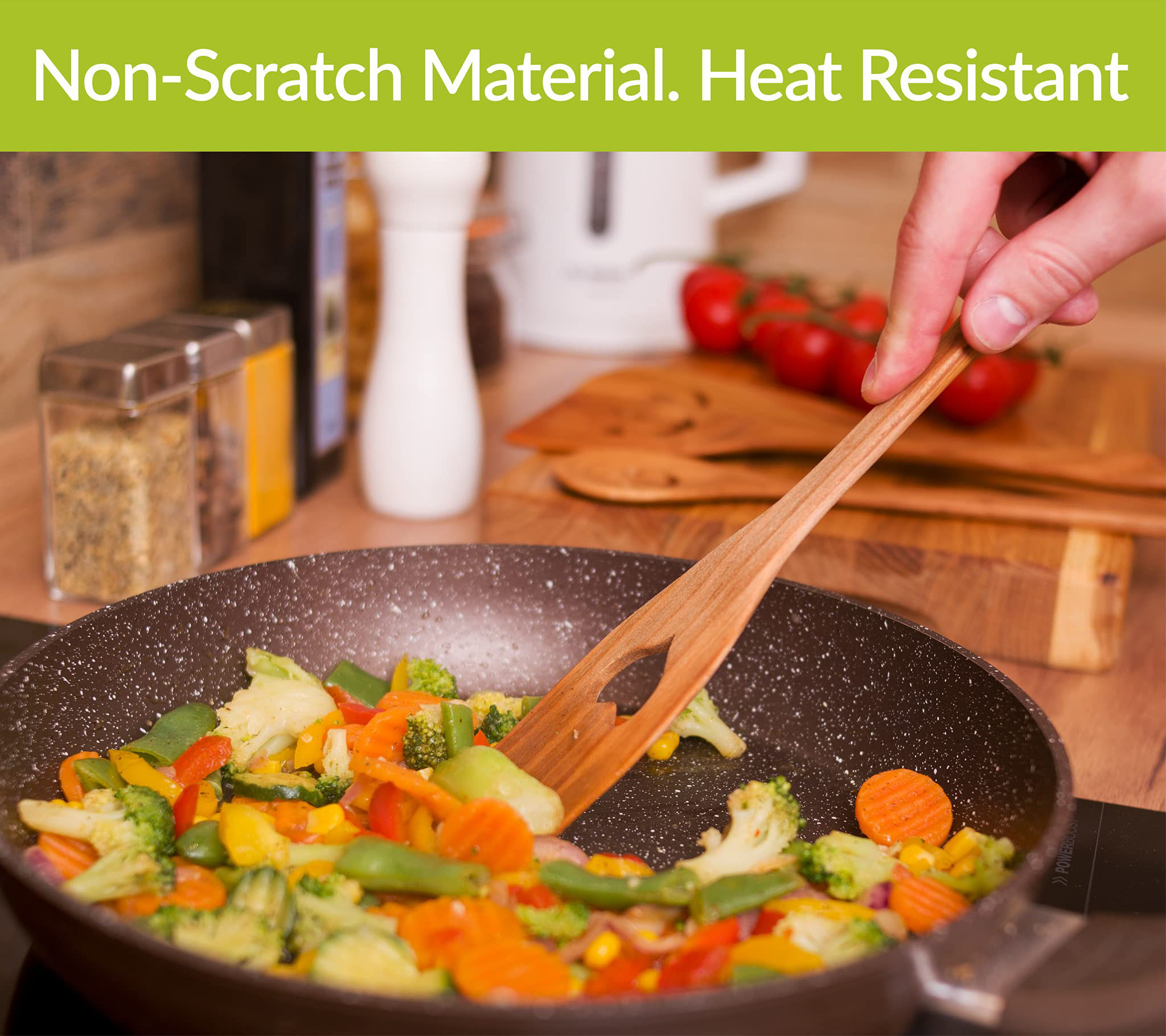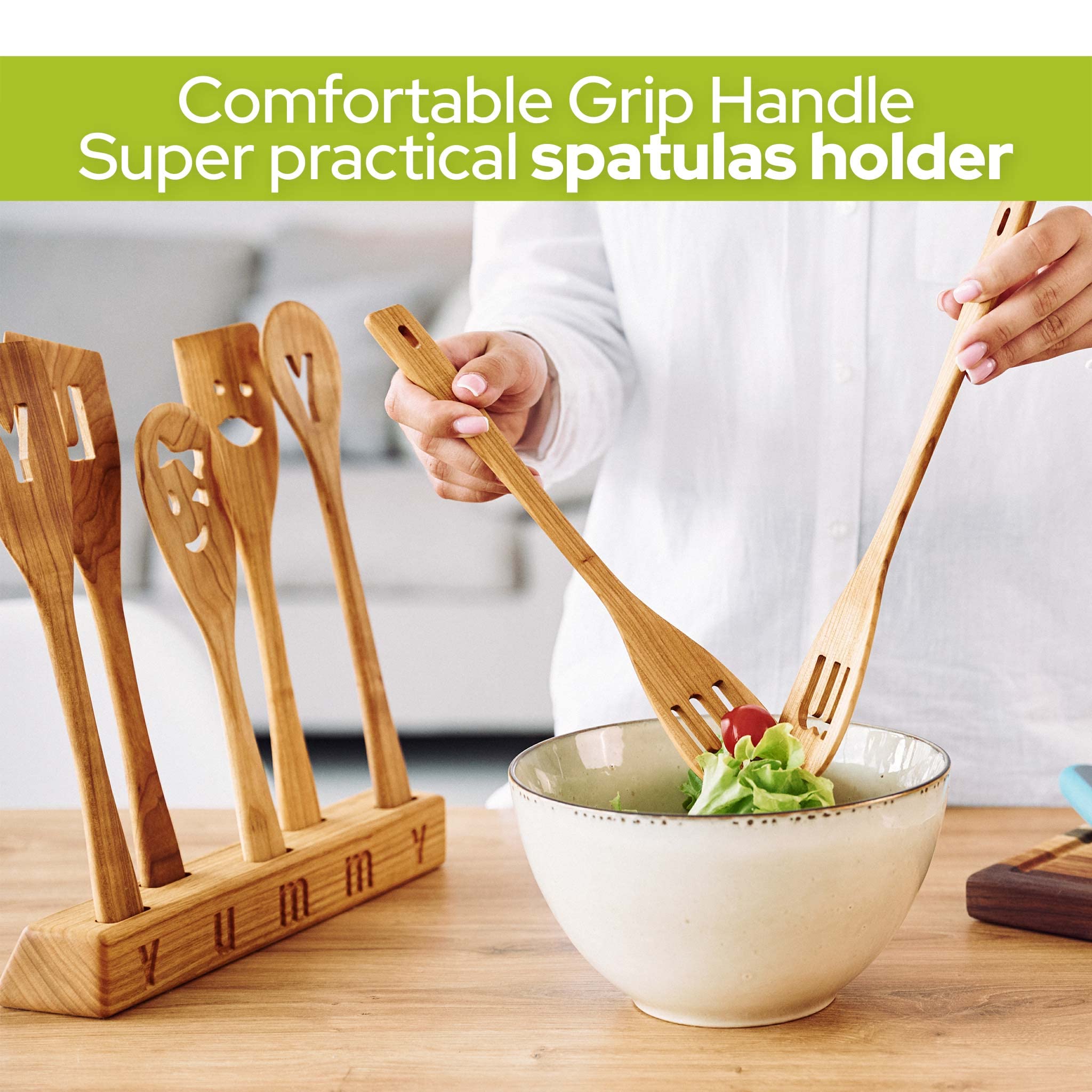 QUALITY & NATURAL MATERIAL. Our wooden cooking utensils are furnished with a smooth surface, making it an ideal cooking tool.