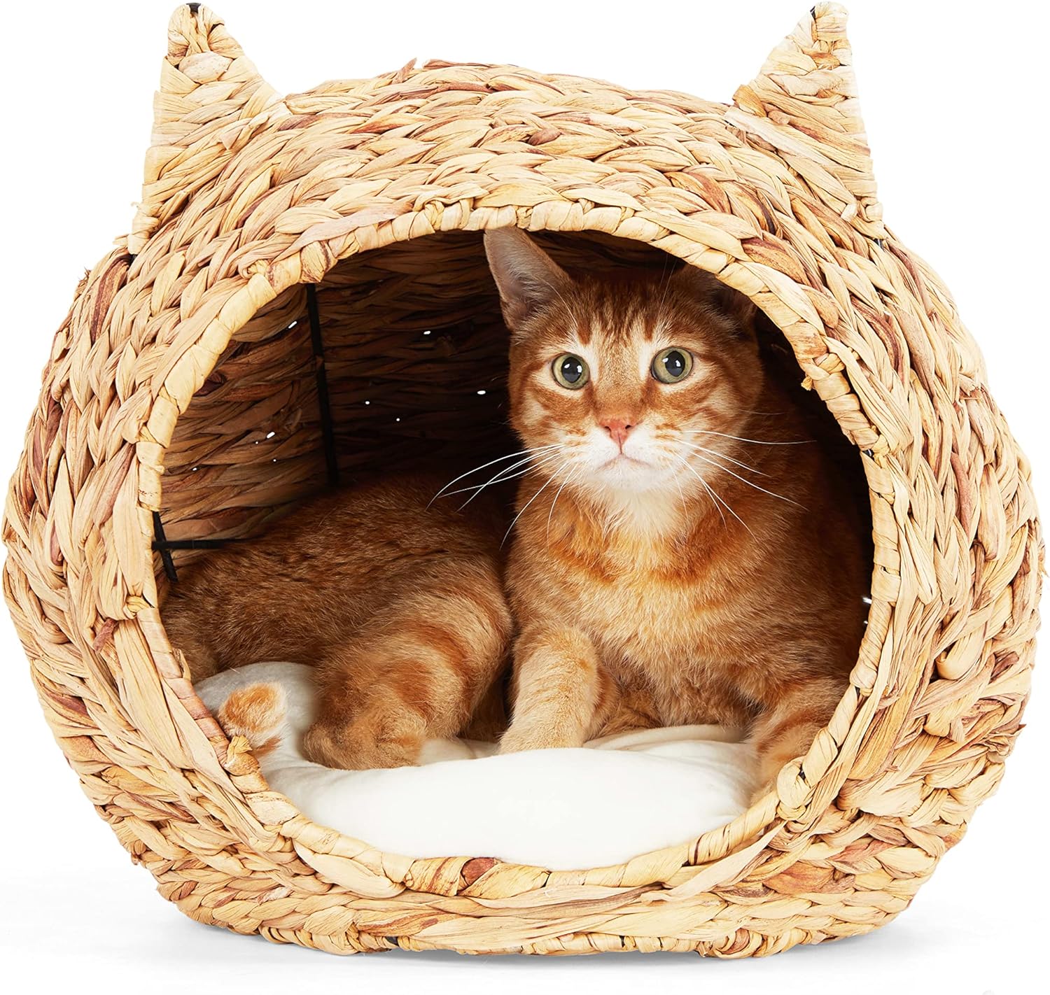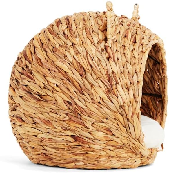 Straw Cat Head Bed With Seagrass Basket Weave Removable Washable Pillow Insert Basket Bamboo Wooden Products Manufacturer