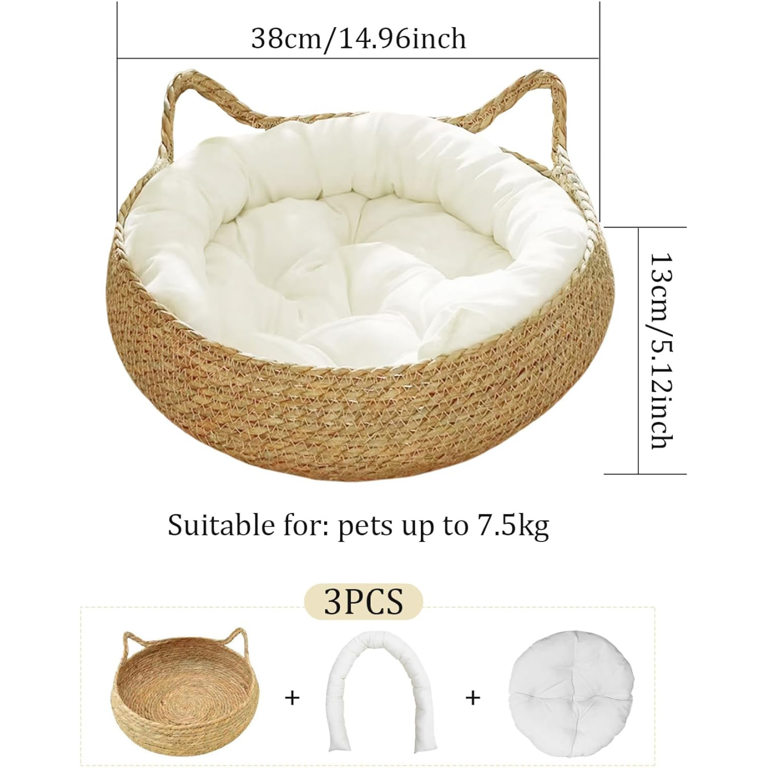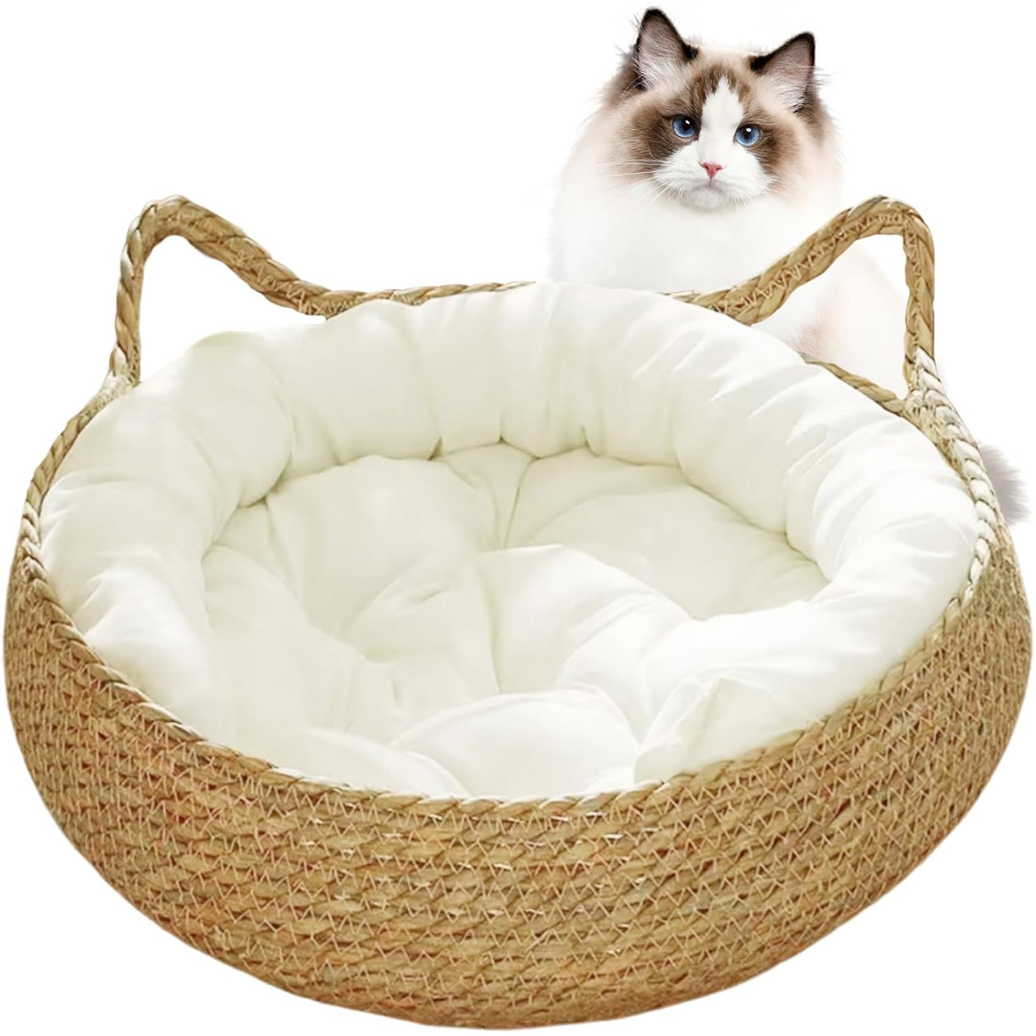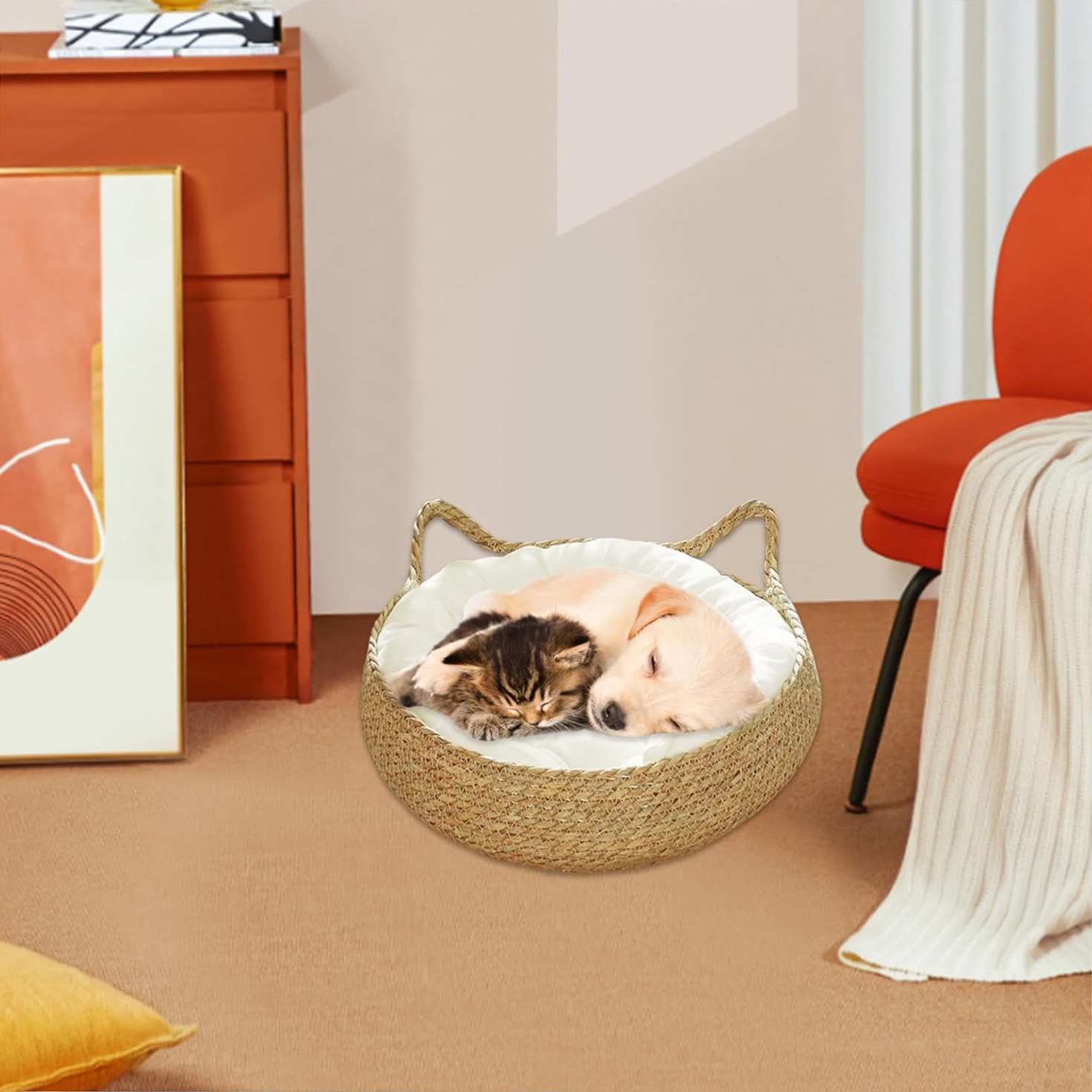 Straw Woven Cat Baskets Bed with Soft Cushion 2-in-1 Cat Beds for Indoor Cats China Manufacturer