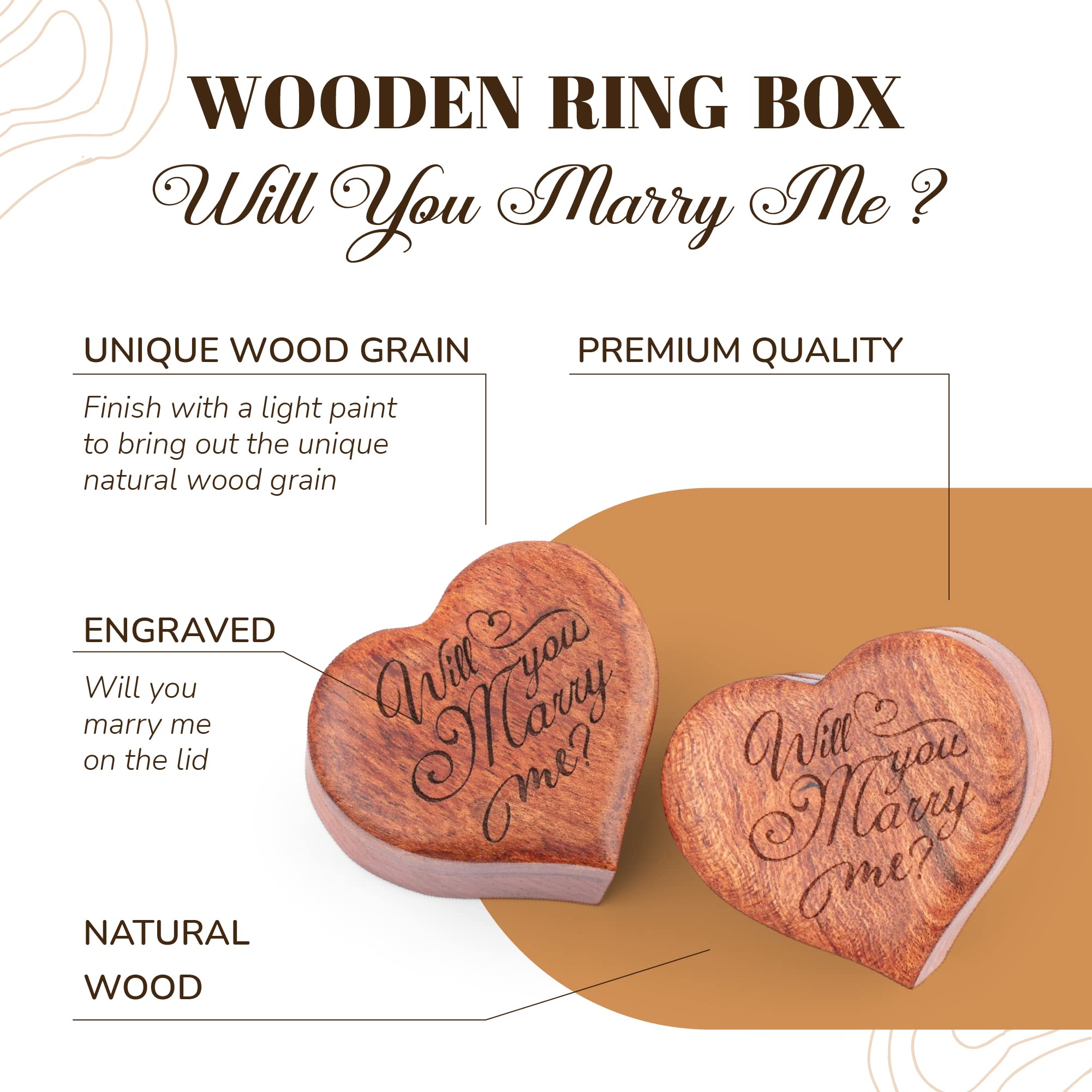 Wood Jewelry Ring Box for Proposal Wedding