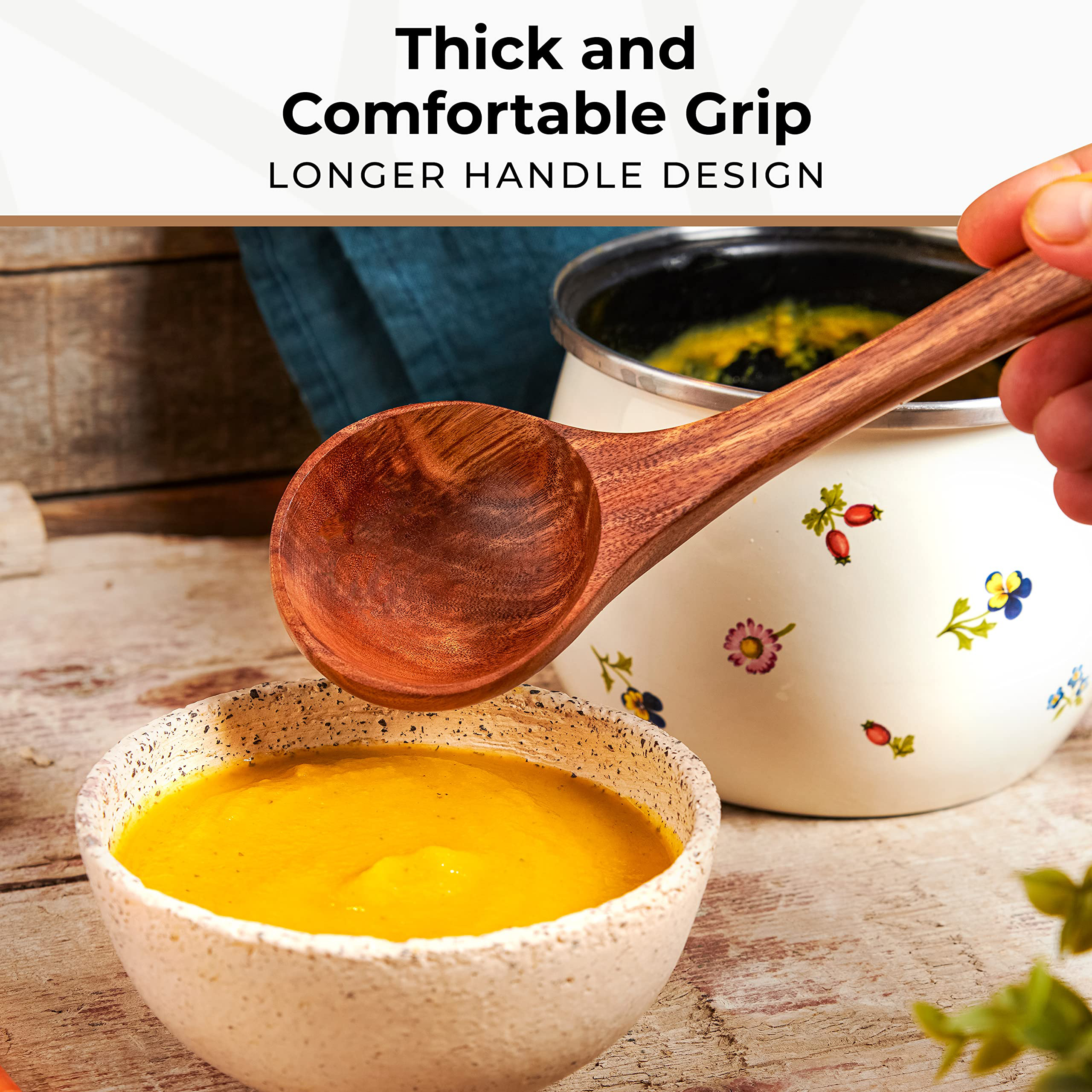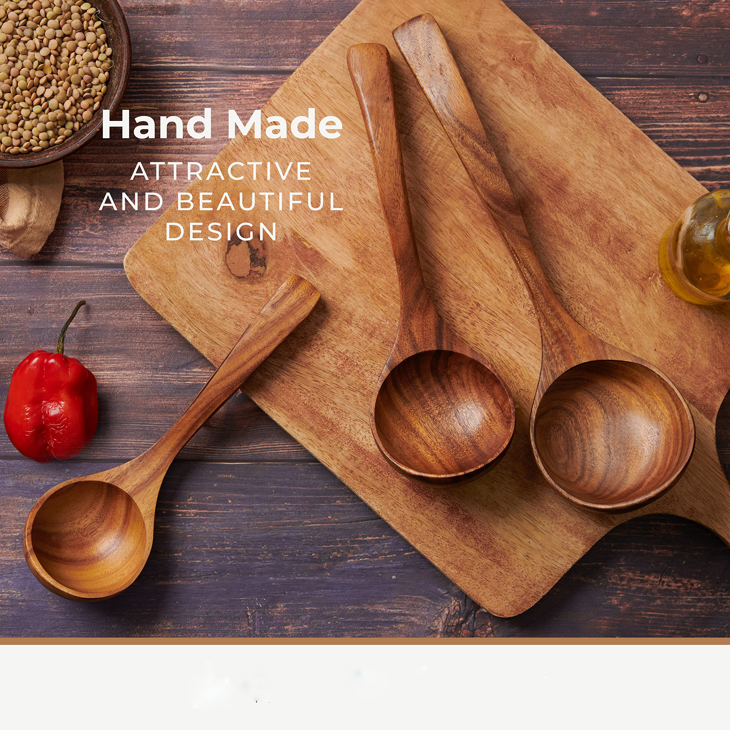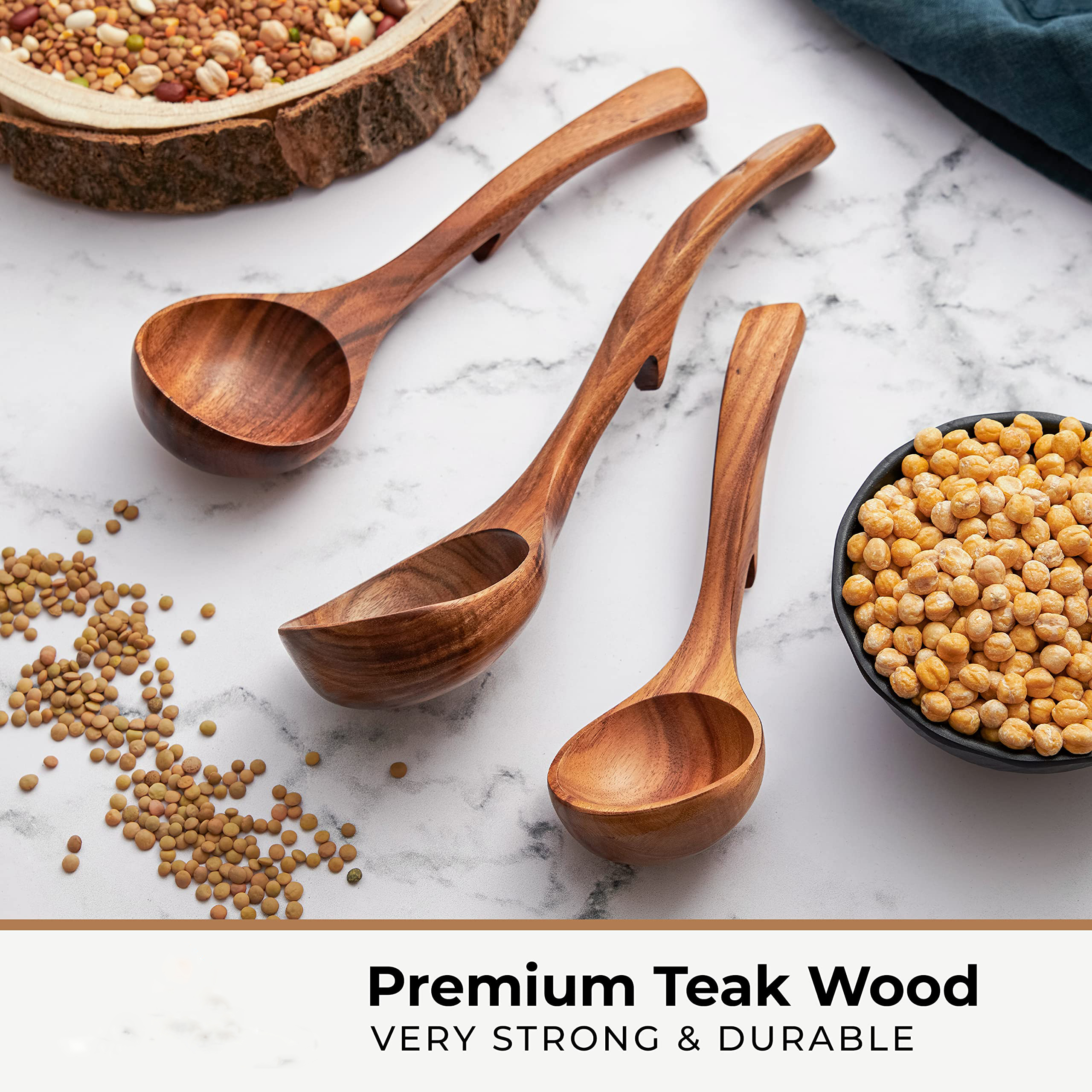 NATURAL TEAK WOOD: they are made of one piece Natural Teak Wood. These ladle spoons are lightweight, solid, sturdy well designed and have a superb finish.