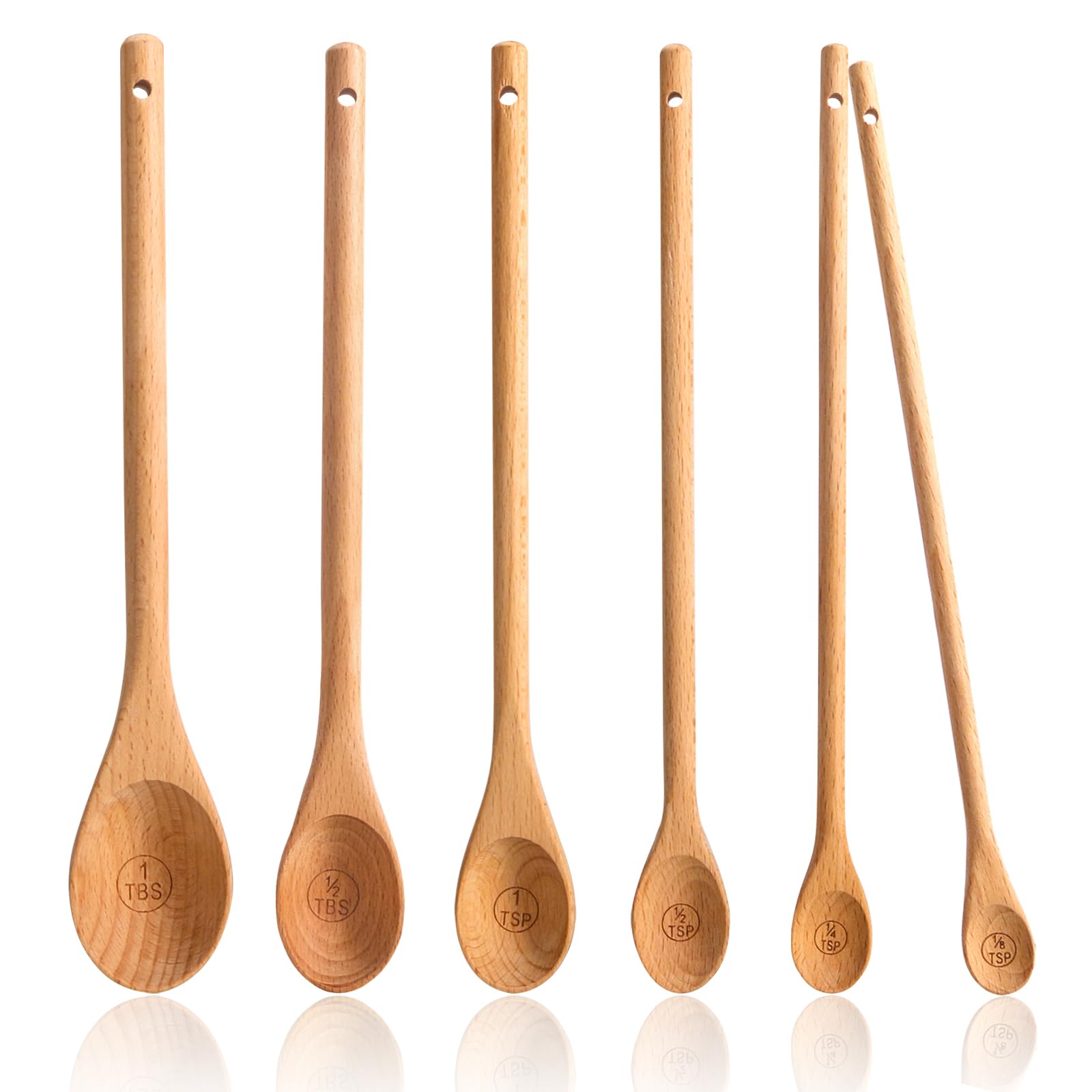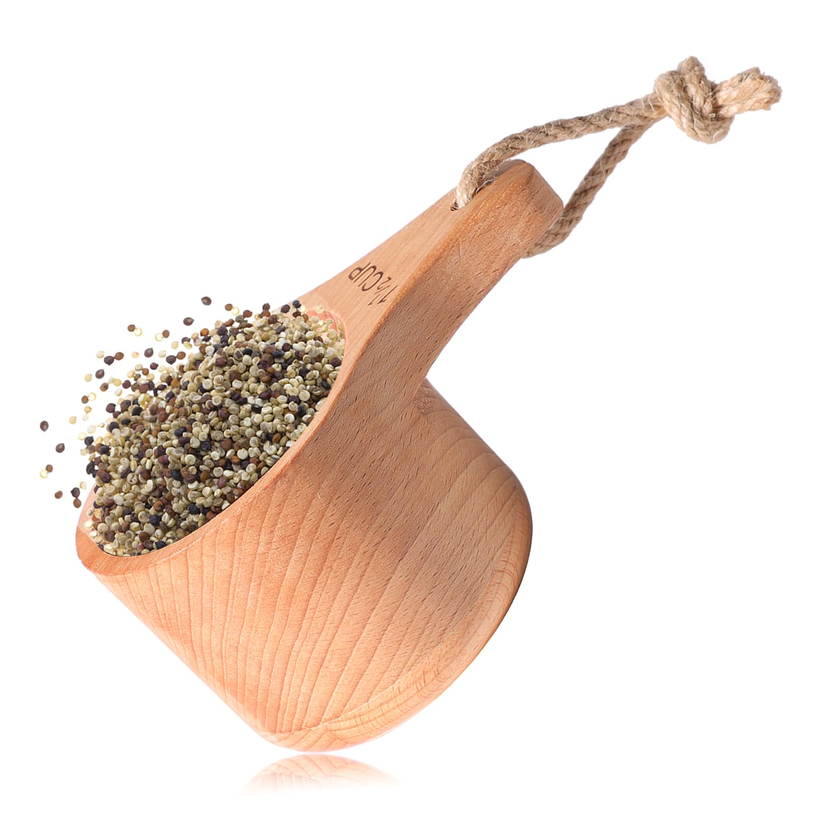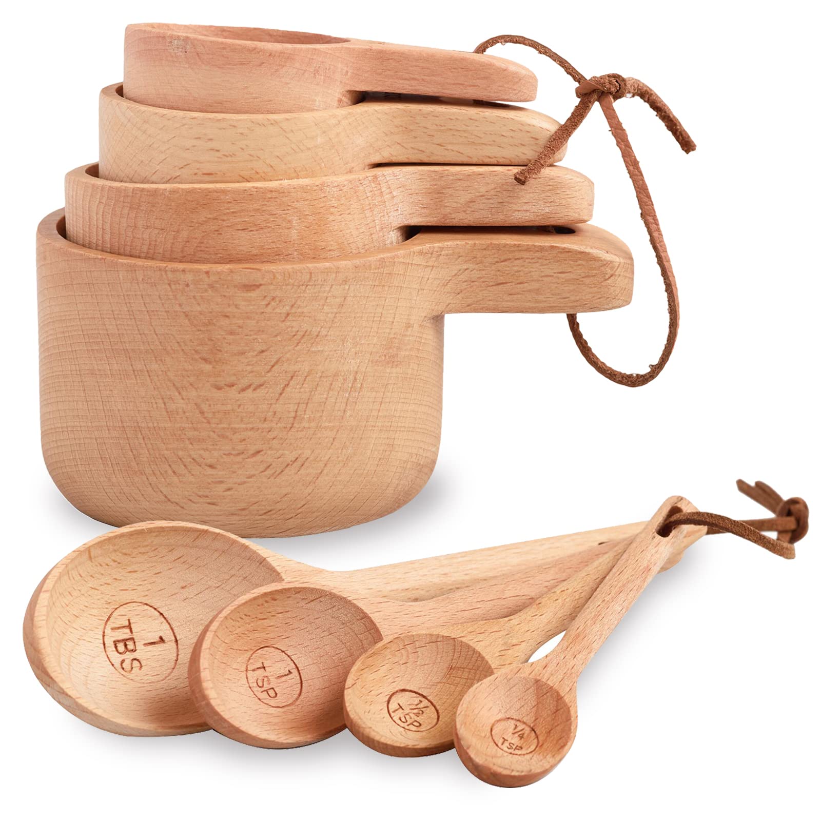 Handcrafted Natural Wood Measuring Cups and Spoons: Made from solid beechwood with a natural woodgrain finish, these measuring tools are free of paint, ensuring food-grade safety. The rustic farmhouse aesthetic adds a touch of natural beauty to any kitchen, complementing various kitchen styles.